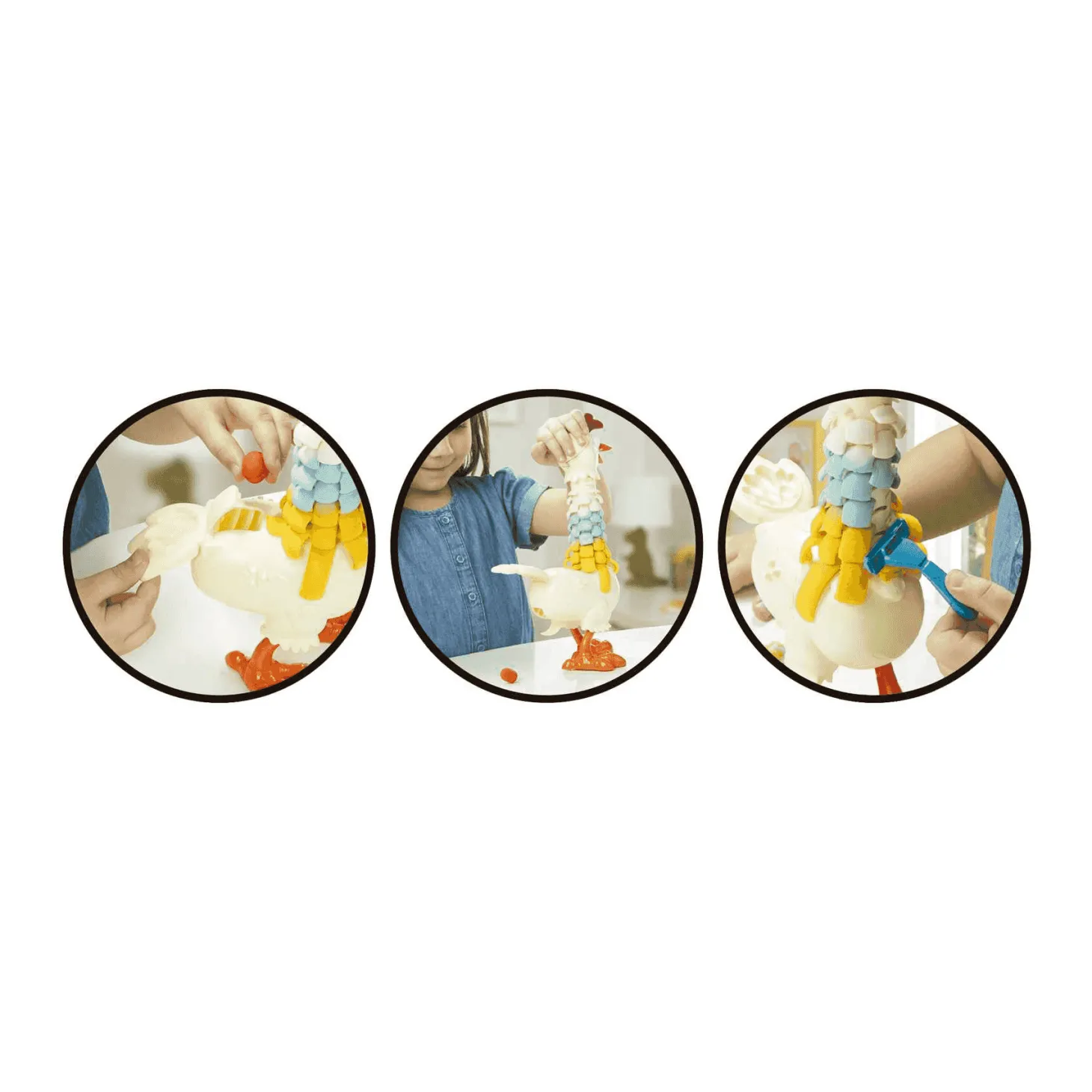 Con las herramientas incluidas, los niños pueden modelar y decorar la gallina a su gusto, añadiendo detalles como plumas de alegres colores para hacerla aún más divertida. Además, podrán disfrutar de la experiencia de poner huevos y crear historias emocionantes con su nueva amiga de plastilina.