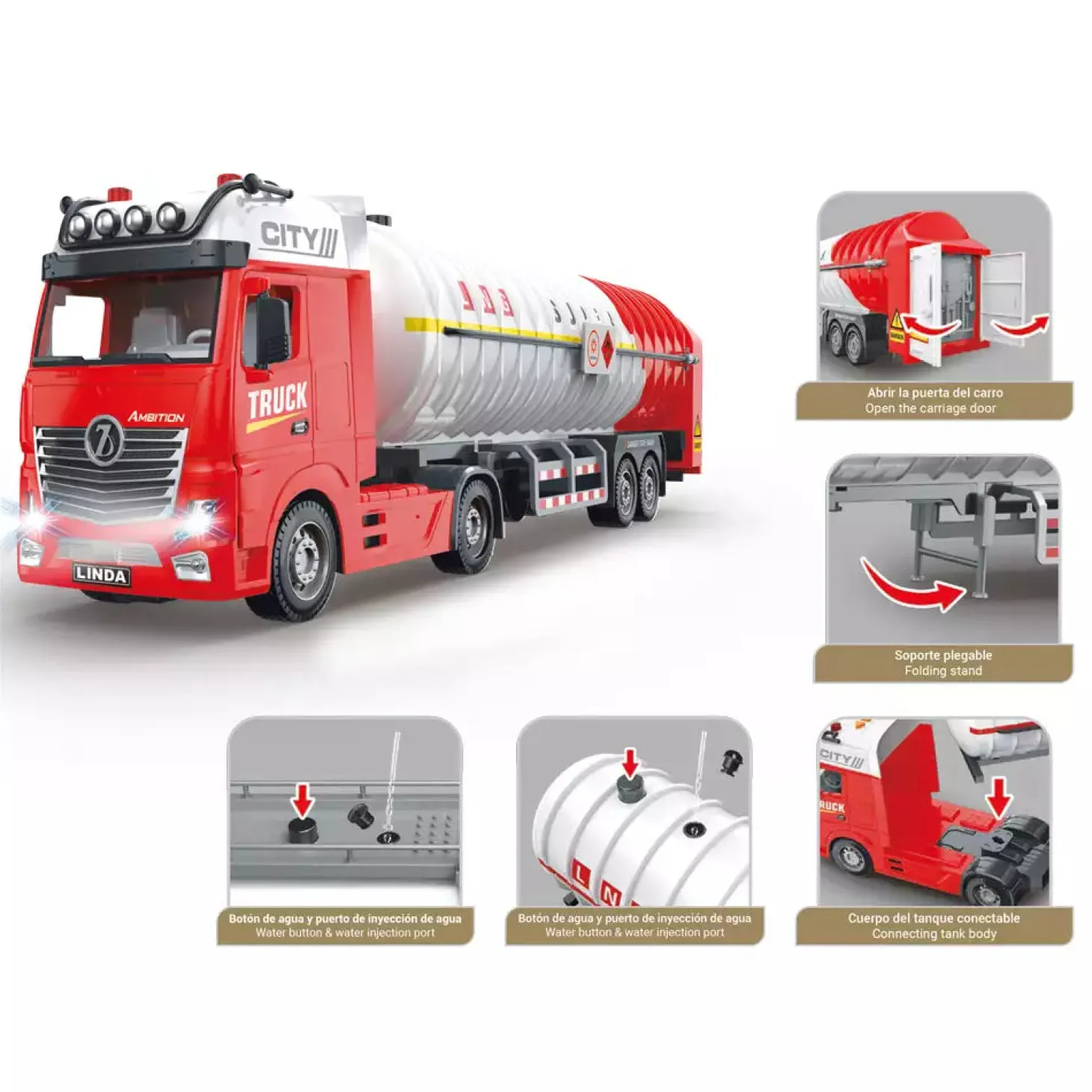 ¿Listo para apagar incendios, regar las plantas o hacer carreras de vehículos gigantes? El Camión Cisterna City Truck está preparado para todo. Con un diseño realista, efectos de luz, compartimentos funcionales, movimiento por fricción ¡y hasta agua de verdad!, este vehículo gigante hará que cada día sea una nueva misión sobre ruedas.
