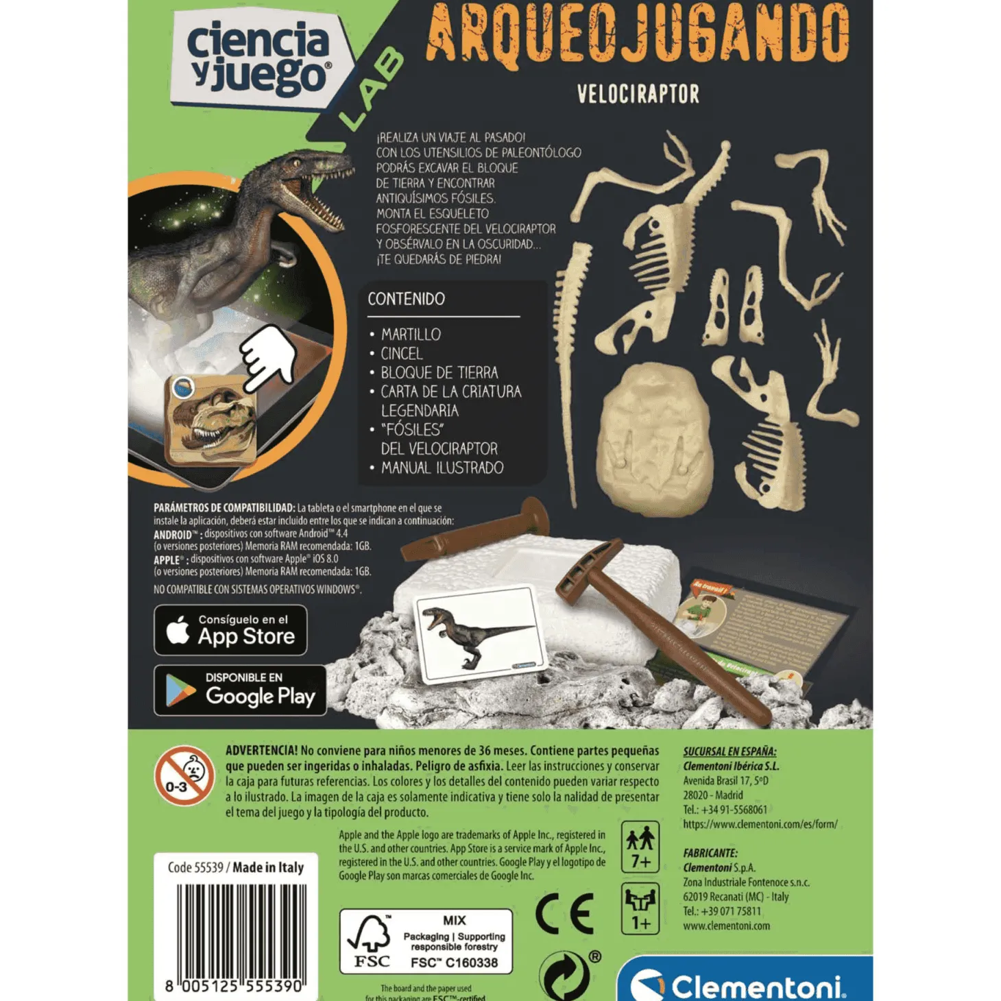 Clementoni Arqueojugando Velociraptor fosforescente