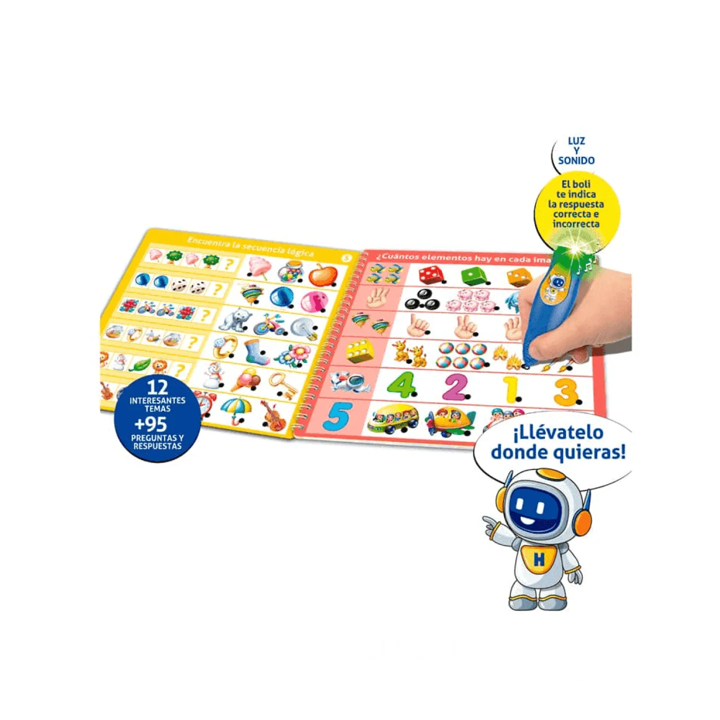 Este juguete cuenta con 12 láminas temáticas y más de 95 preguntas que ayudan a desarrollar habilidades clave como la lógica, la memoria y la observación. Entre sus actividades encontrarás: