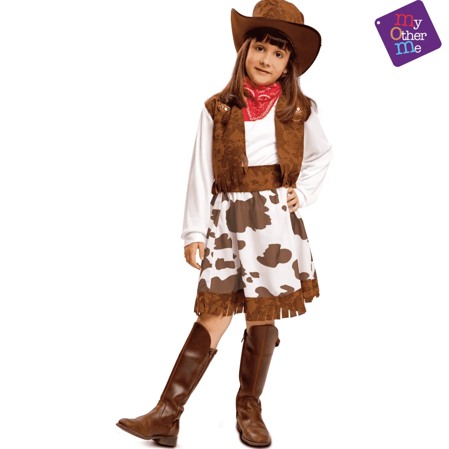 Disfraz de Vaquera blanco y marrón 3-4 años