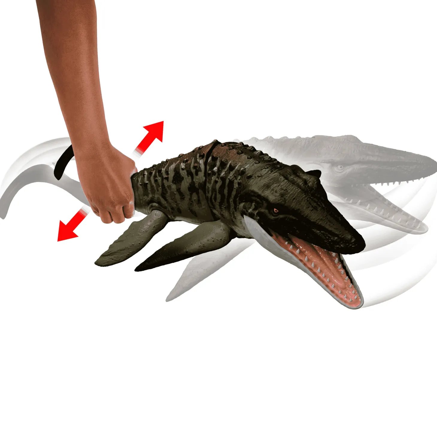 - Función de mordida interactiva: Presiona la cola y el Mosasaurio ¡atacará! La mandíbula se activa con el movimiento para simular un ataque realista.