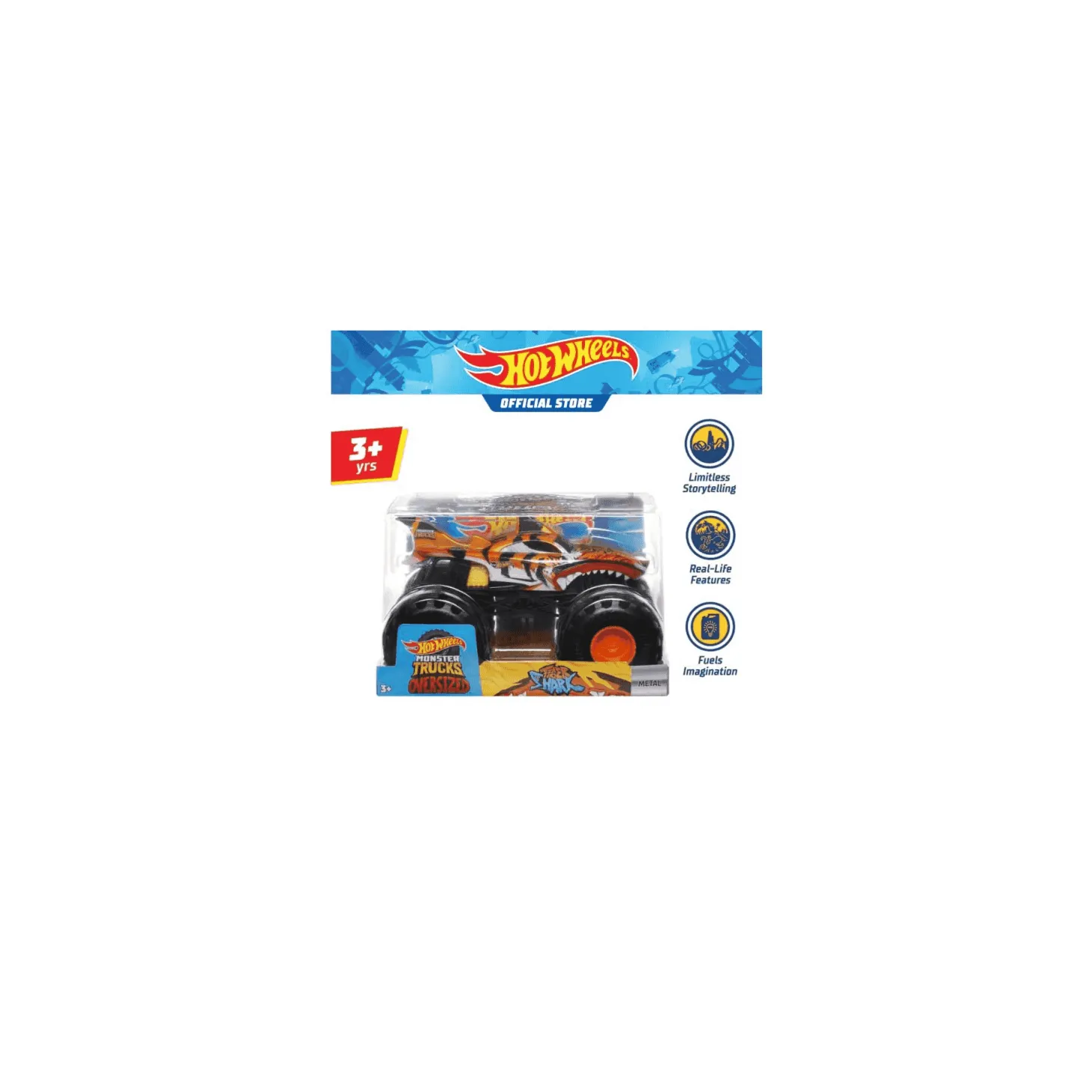 Hot Wheels Monster Trucks Tiburón Tigre de Gran Tamaño HWG91