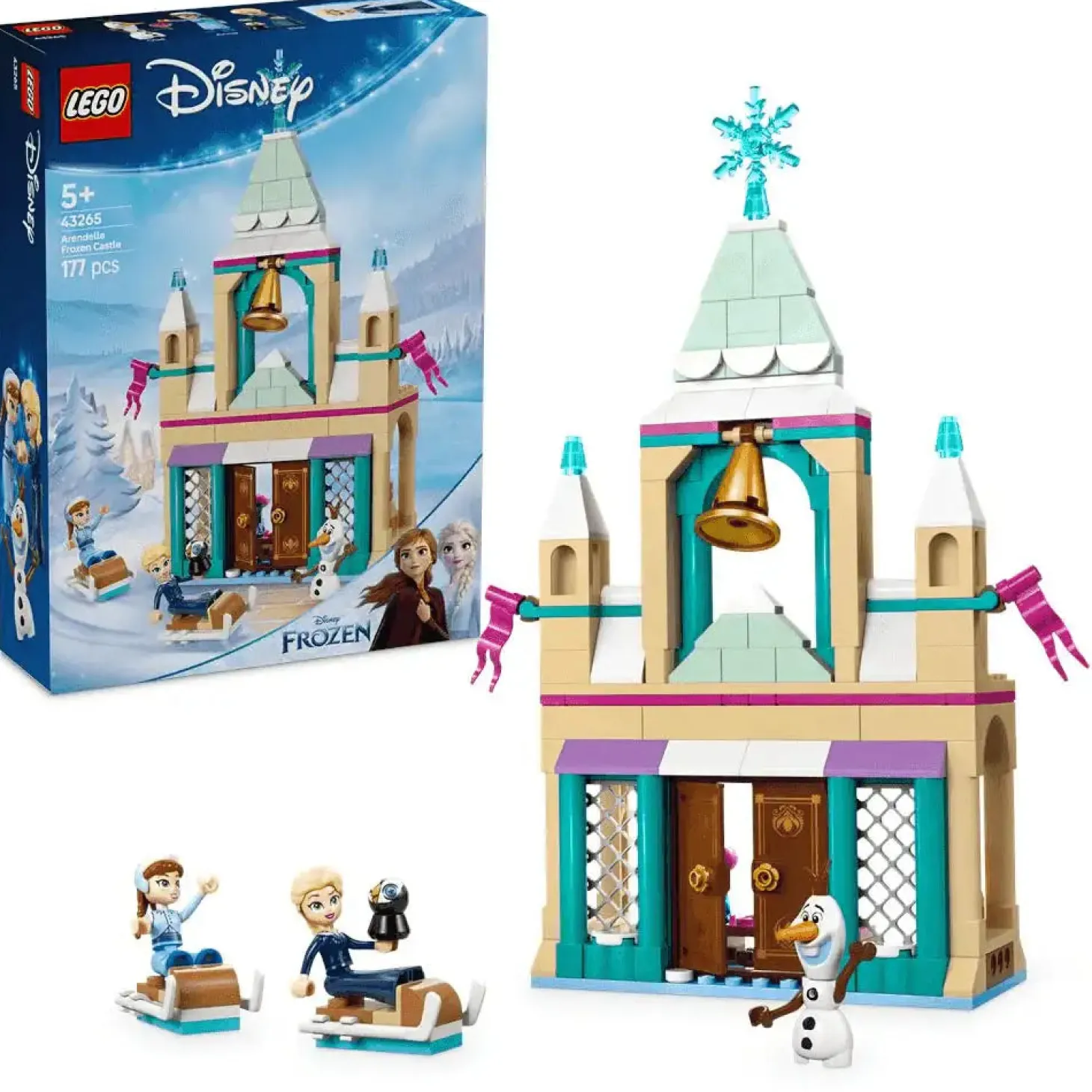 A los peques y los fans a partir de 5 años les esperan encantadoras aventuras invernales en el divertido Castillo Helado de Arendelle LEGO | Disney Frozen (43265), un juguete de fantasía para construir que incluye un castillo con puertas que se abren, comedor y alcoba, 2 trineos construibles para hacer carreras y más divertidos elementos. El kit de maqueta construible cuenta con minipersonajes LEGO | Disney de Elsa y Anna, así como con una figura LEGO | Disney del muñeco de nieve Olaf. Este juego infantil de alta calidad viene lleno de características y funciones que proporcionarán gratificantes experiencias de juego y, además, es un fantástico regalo de cumpleaños del universo Disney para niñas, niños y fans de Frozen, las películas Disney. Este juguete de construcción combina genial con otros sets LEGO | Disney de la gama (a la venta por separado). Para añadir más diversión, los peques pueden disfrutar de una sencilla e intuitiva aventura de construcción con la app LEGO Builder.