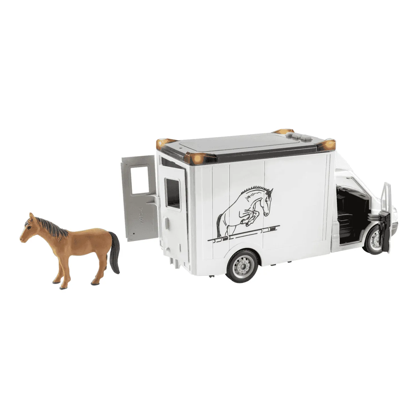 El juego con este camión transporte de caballos favorece el desarrollo de habilidades motoras finas, la coordinación mano-ojo, la resolución de problemas y la socialización, ya que los niños pueden compartir y disfrutar juntos de las aventuras que crean.