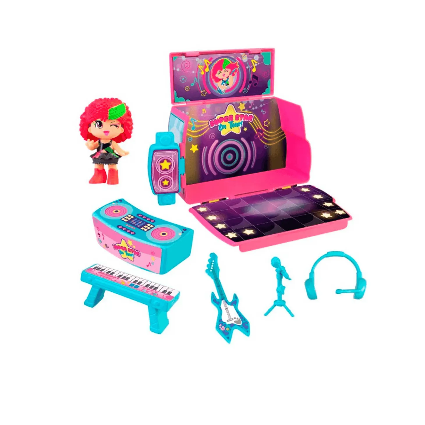¡Descubre la diversión con el Pinypon Super Star On Tour! Este set de juego inspirado en el mundo de la música y el espectáculo hará las delicias de los peques que sueñan con ser estrellas.