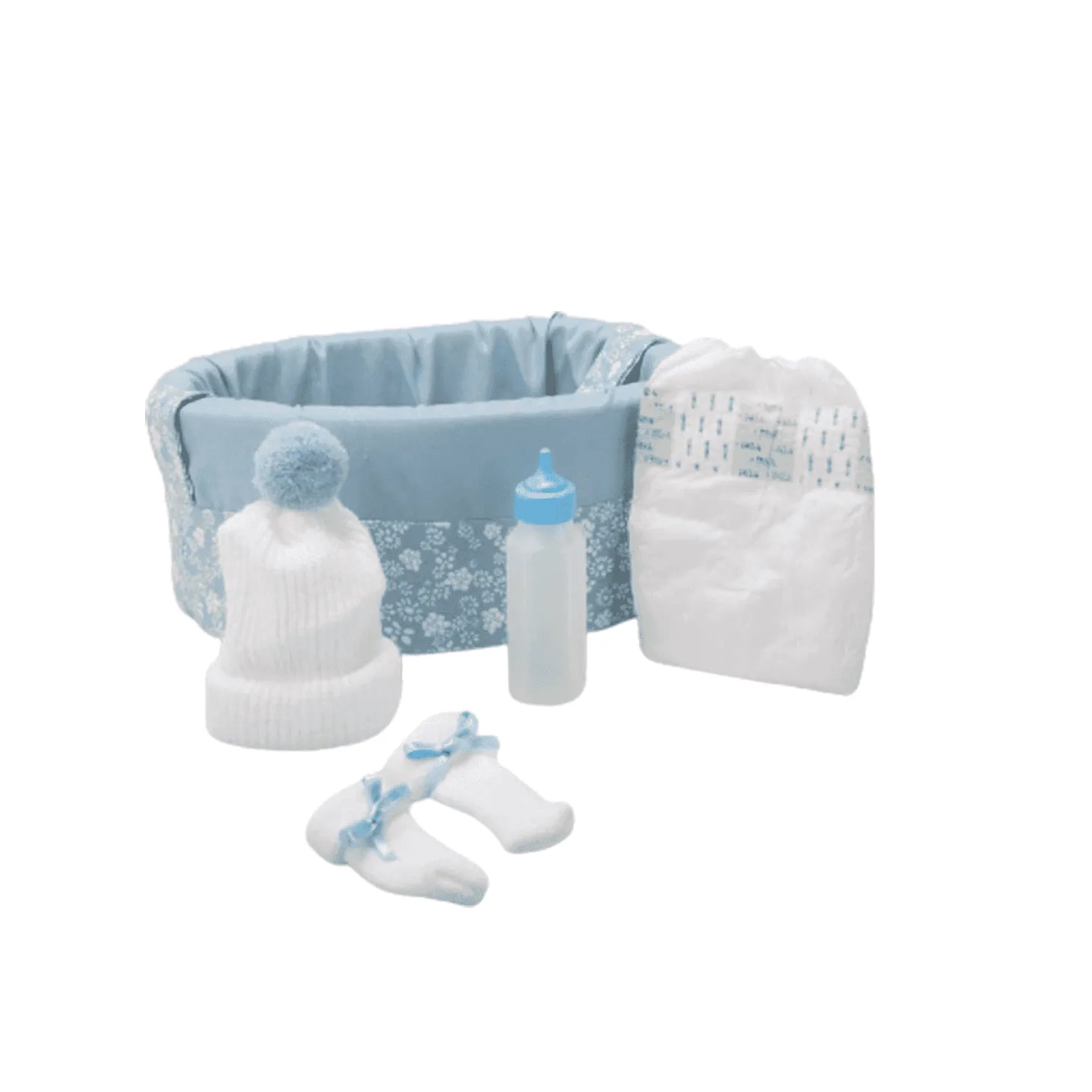 - Contiene un biberón, un pechito, unos peucos y un pañal.