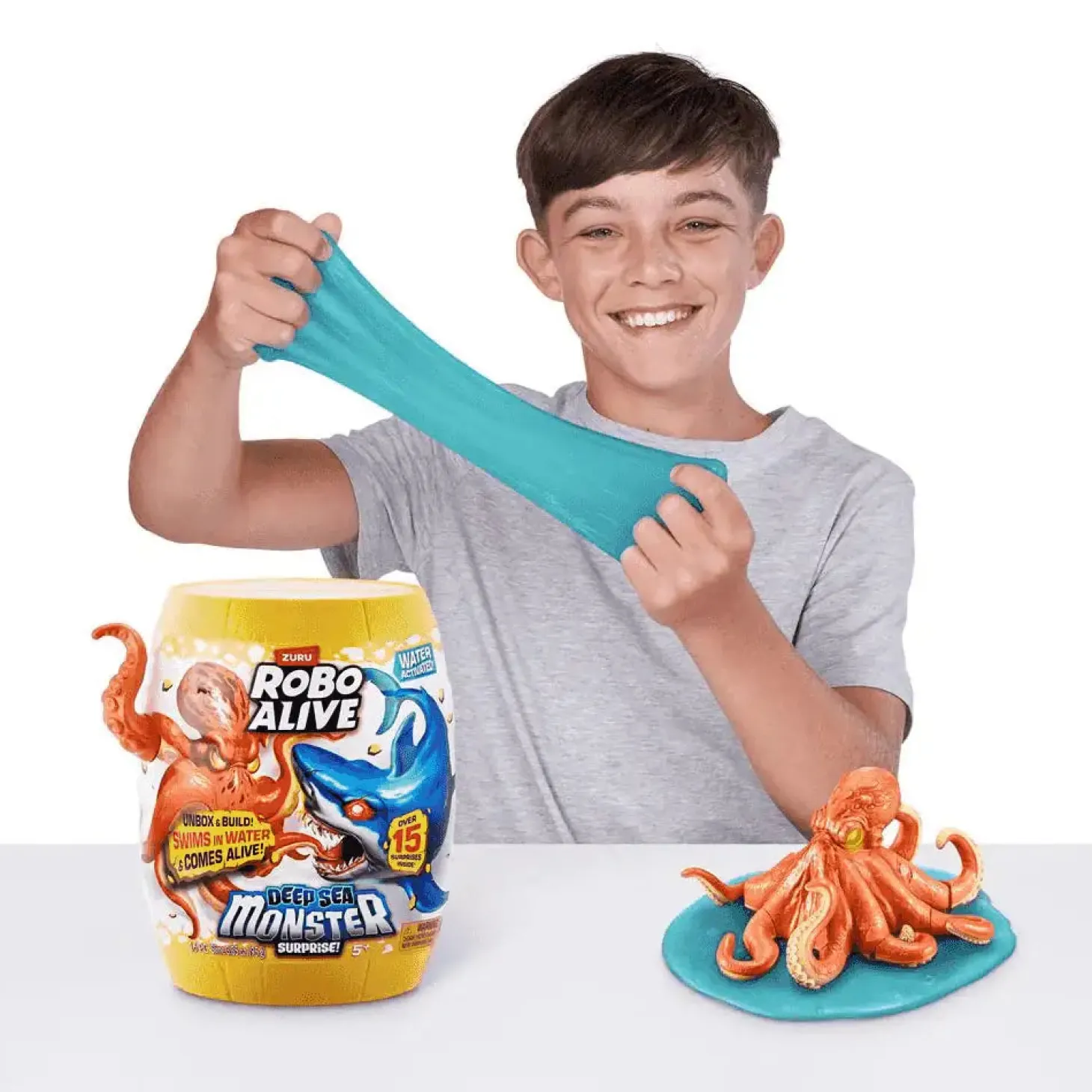 Según el packaging Deep Sea Monster Surprise, la criatura “cobra vida” al mojarla, con efecto de ojos rojos y contenido temático como deep sea slime. Ideal para peques que disfrutan de descubrir, coleccionar y jugar con criaturas del océano.