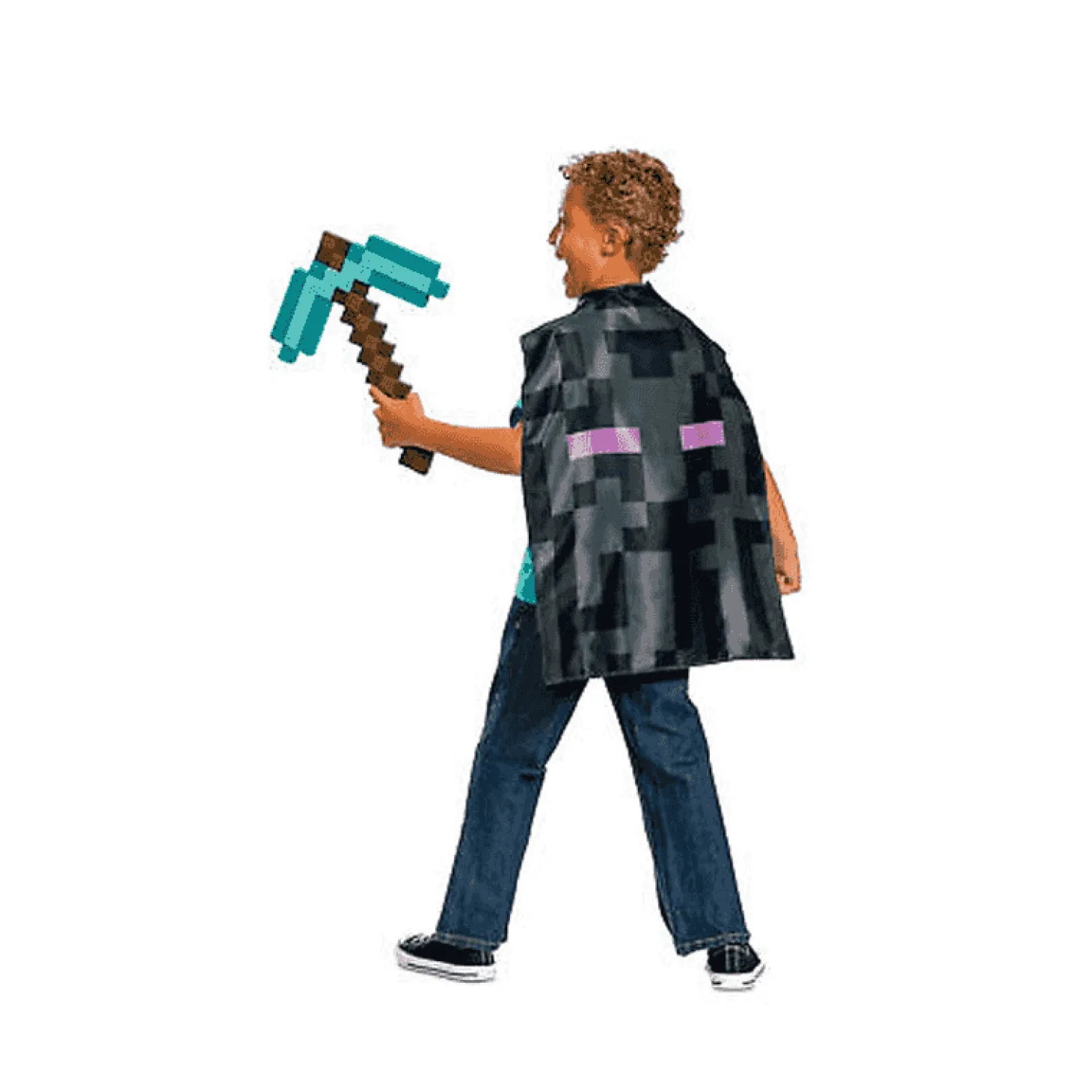 - Capa de Enderman: Una capa satinada con diseño pixelado que representa al misterioso Enderman. Ideal para sumergirse en el rol y vivir aventuras únicas.