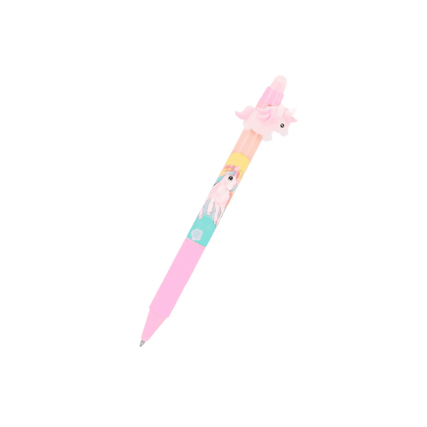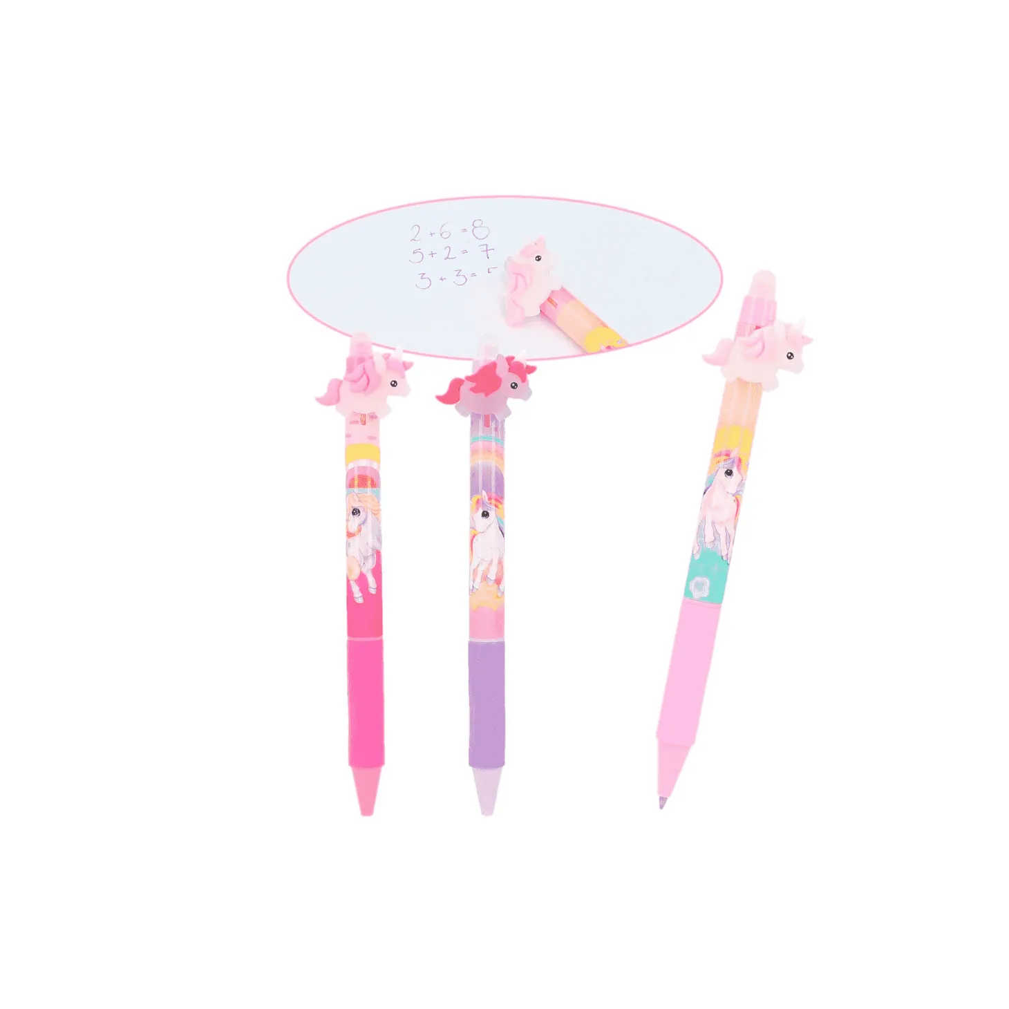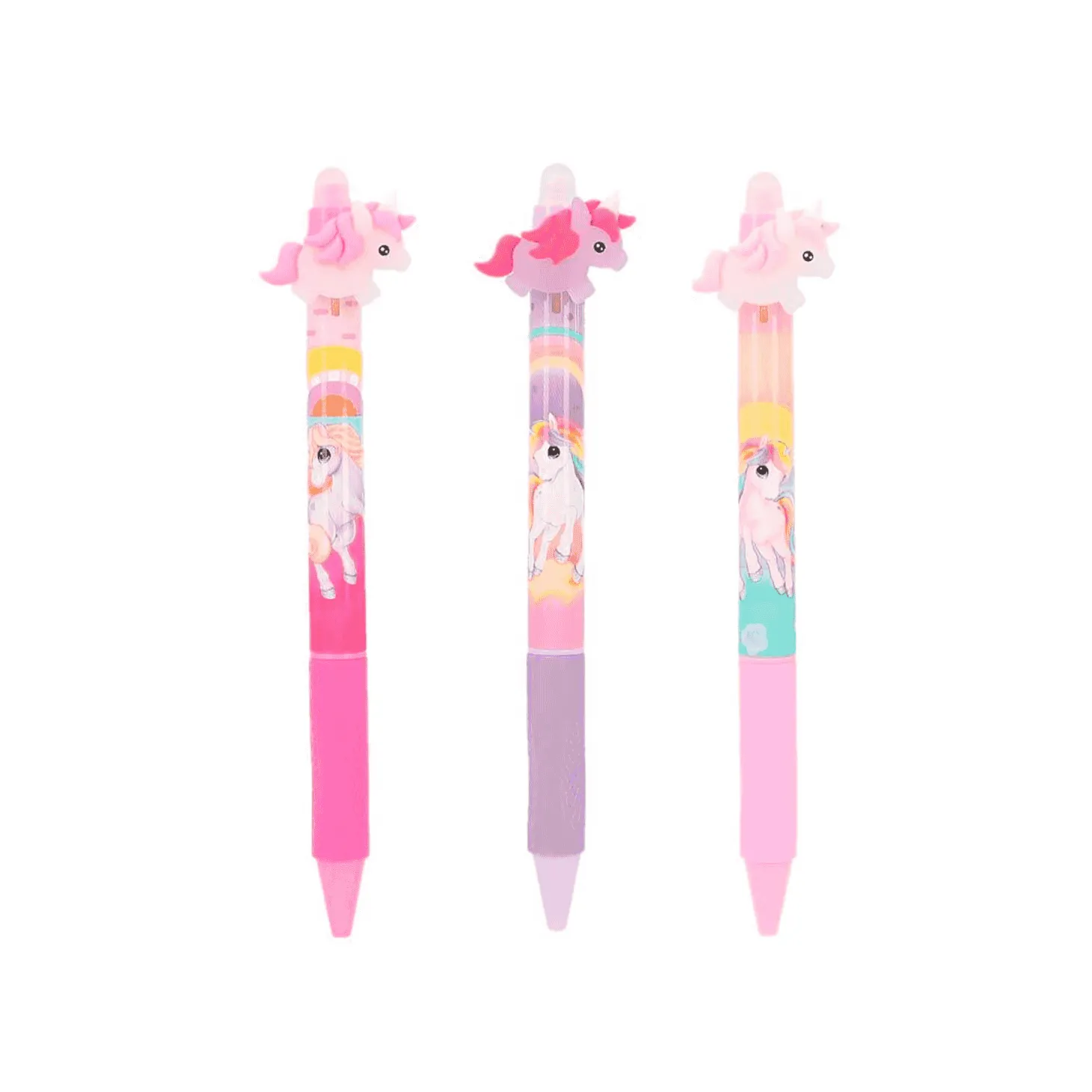 La tinta de estos preciosos bolígrafos de gel de Ylvi se borra muy fácilmente, revelando una mina oculta detrás del diseño de unicornio. Disponibles en tres combinaciones de colores diferentes: lila y fucsia, blanco y violeta, y rosa y fucsia. La tinta es de color azul y la mina no es recambiable.