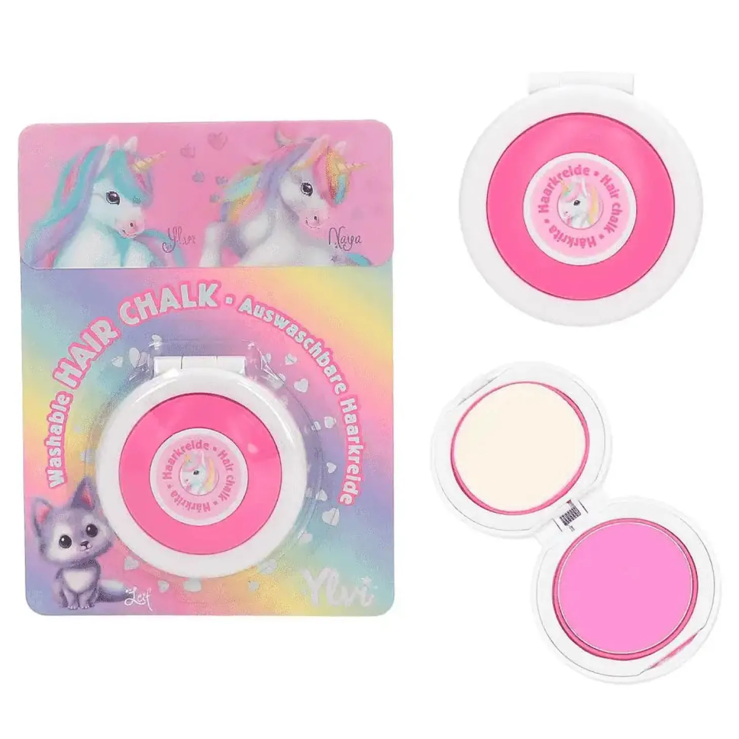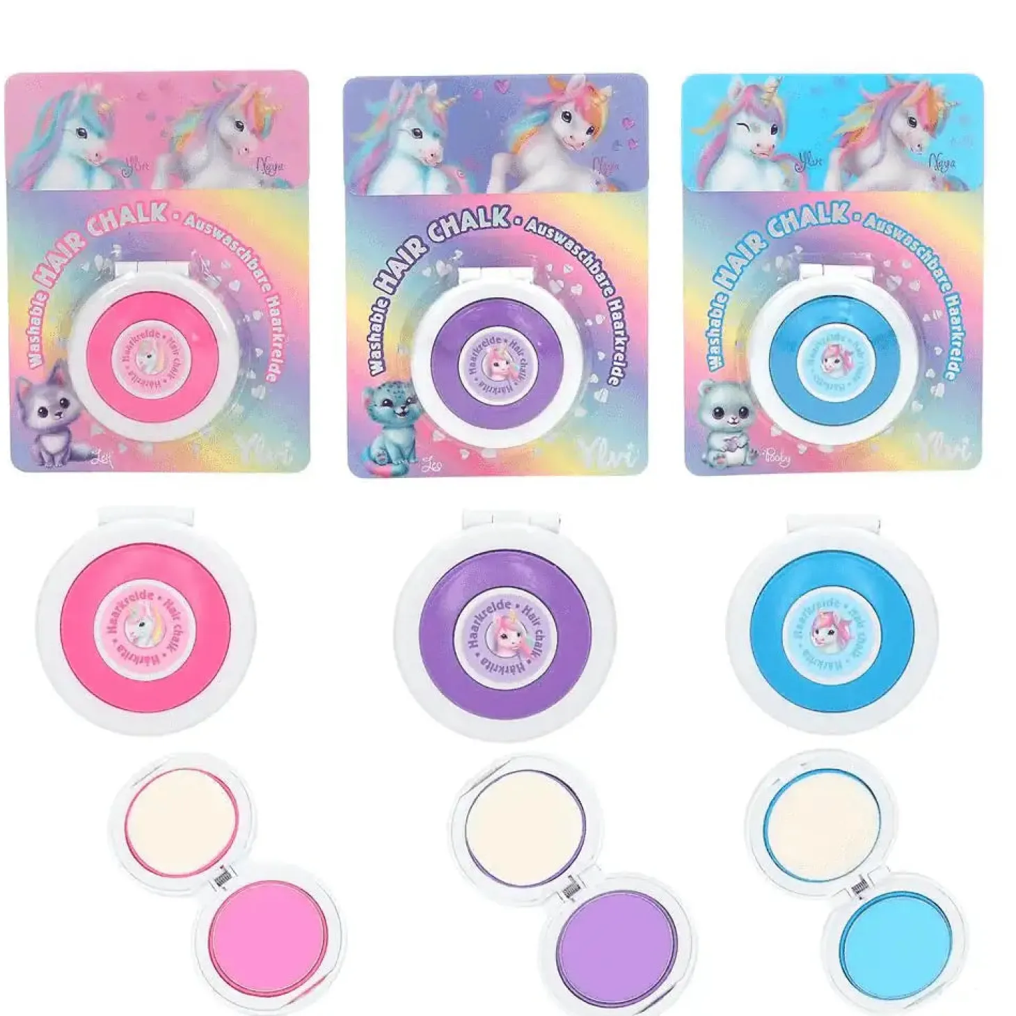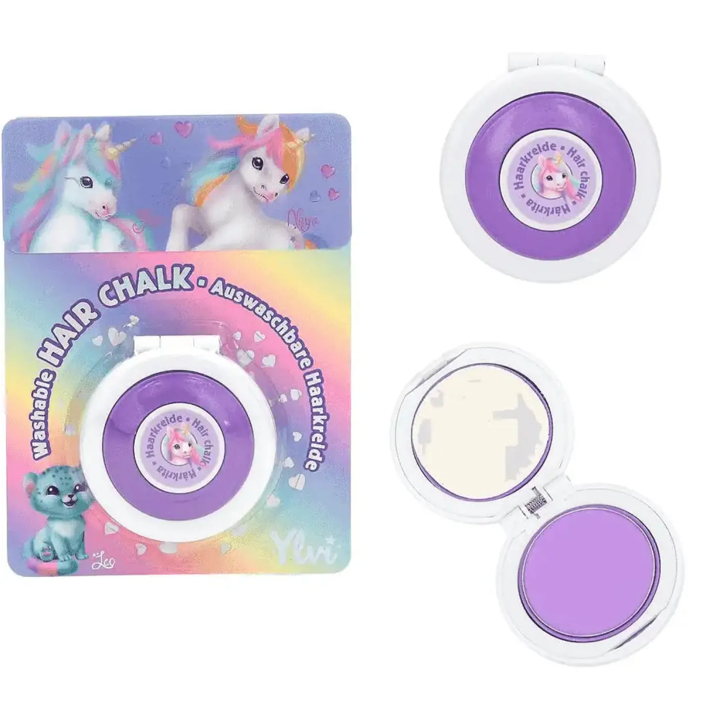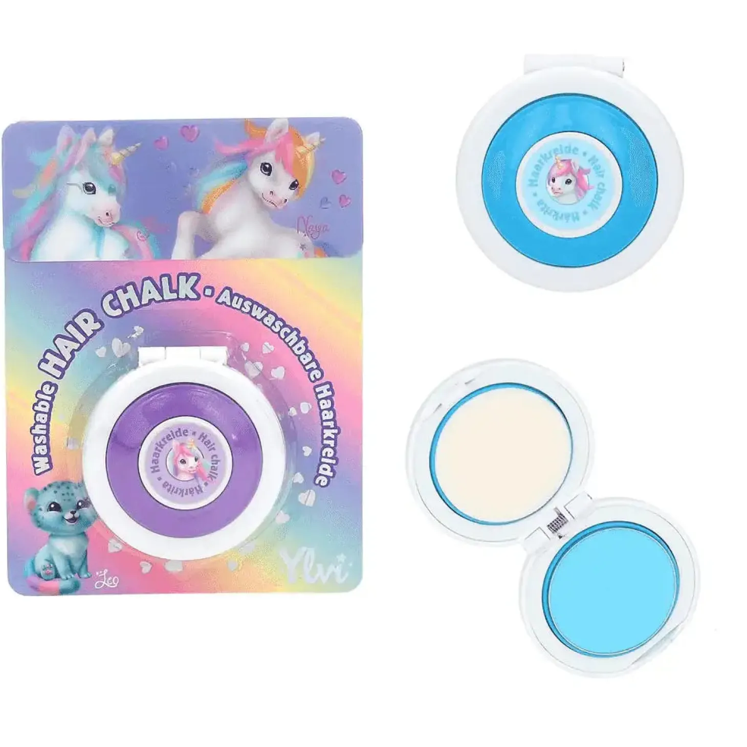 Descripción del producto: ¡Maravillosas mechas de colores con la tiza para el pelo de Ylvi! Se aplica de forma muy sencilla gracias a la esponja integrada en la cajita redonda. Con monísima imagen movible en el envase. Disponible en tres colores: rosa, lila, azul. El color se elimina fácilmente al lavar el pelo. Contenido por cajita: 2,1 g.