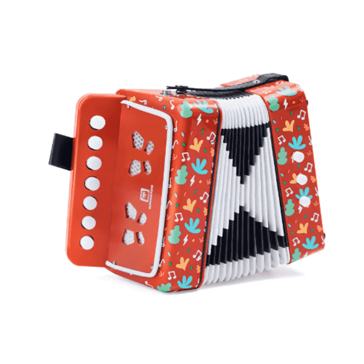 Este acordeón infantil está fabricado con materiales resistentes y adaptados al uso de los más pequeños. Al estirarlo y comprimirlo, los niños podrán crear sus propias melodías mientras se familiarizan con el movimiento y el sonido característico del instrumento.