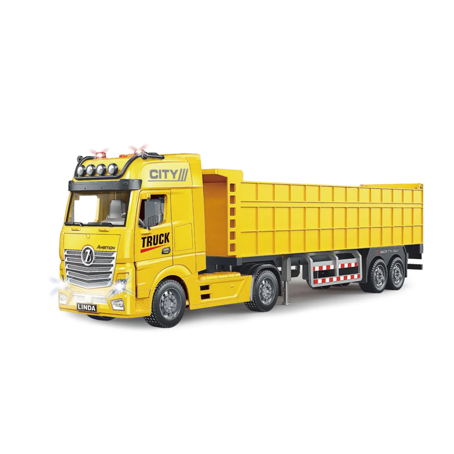 Este impresionante camión de obra no solo parece de verdad, también suena y brilla como uno real. Con detalles súper cuidados, efectos de luz y sonido, y un sistema de fricción que lo impulsa con solo empujarlo, este camión se convertirá en el vehículo estrella de tu colección.