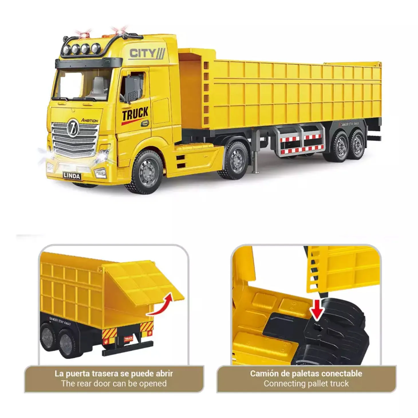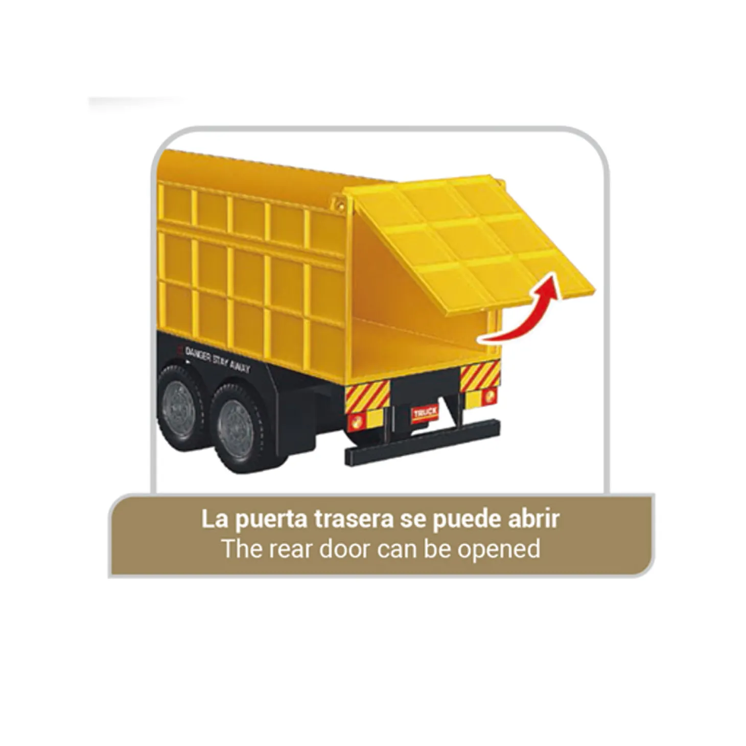 - La puerta trasera se abre como un camión de verdad para descargar materiales.