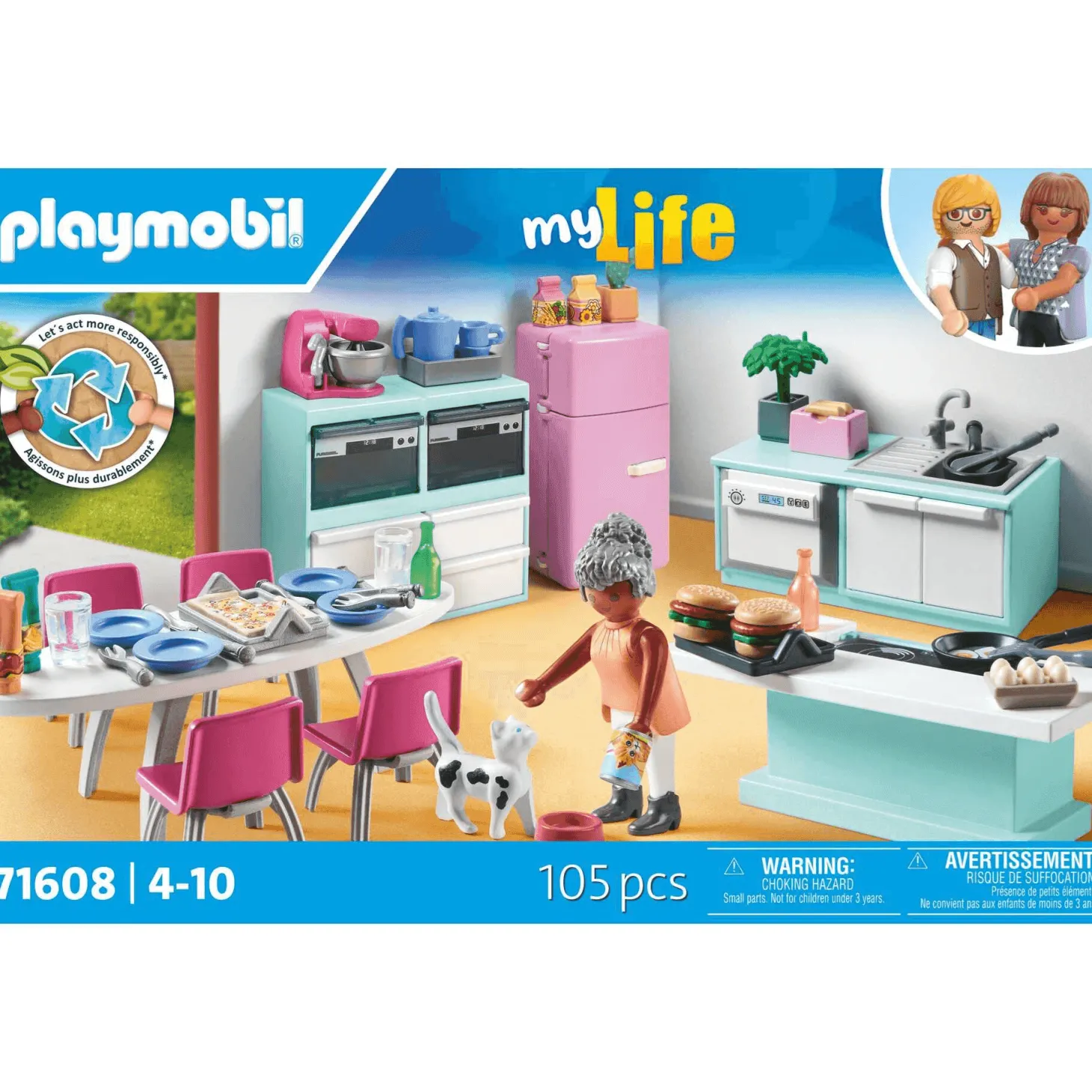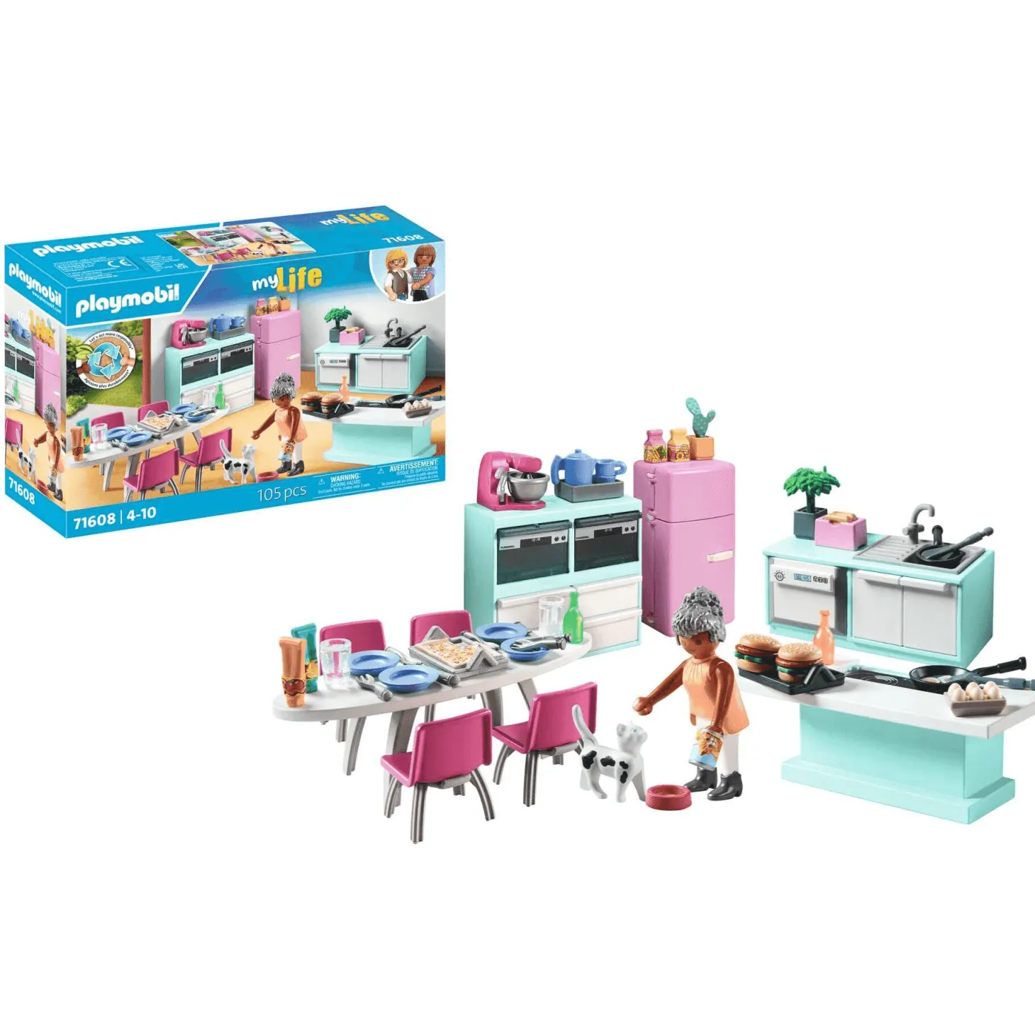 ¿Te gustaría tener una cocina tan bonita como funcional? La Cocina Playmobil My Life con isla central es ideal para los peques que sueñan con decorar su propia casa y preparar sus mejores recetas. Además, ¡es sostenible! Más del 80% de sus materiales son reciclados o de origen natural. Y como en toda cocina de verdad, ¡hasta el gato tiene su rincón para picar algo!