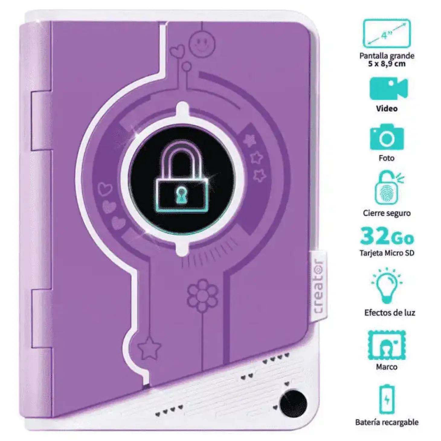 Pensado para niñas y niños a partir de los 7 años, este dispositivo requiere supervisión por su tecnología y componentes delicados. Es una elección ideal como regalo de cumpleaños para fans de lo tecnológico o como herramienta para mantener un diario digital que guarda recuerdos de forma privada.