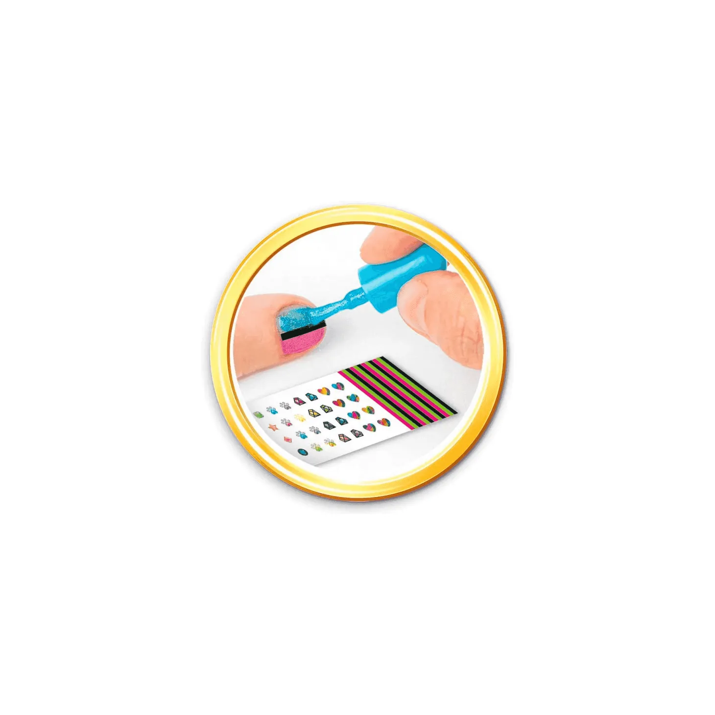 - Incluye esmaltes de colores, purpurina, pegatinas y accesorios para decorar.