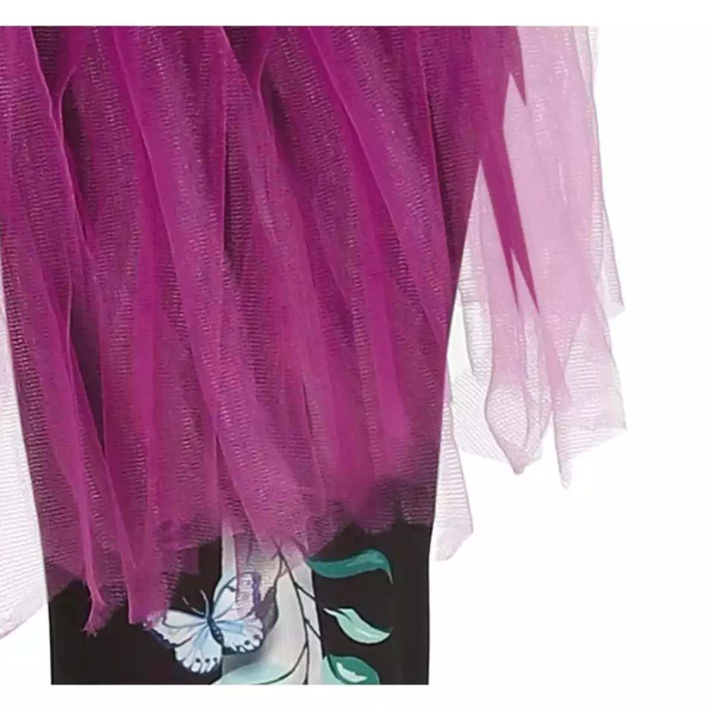 - Tutú morado de tul que añade volumen y un toque elegante.