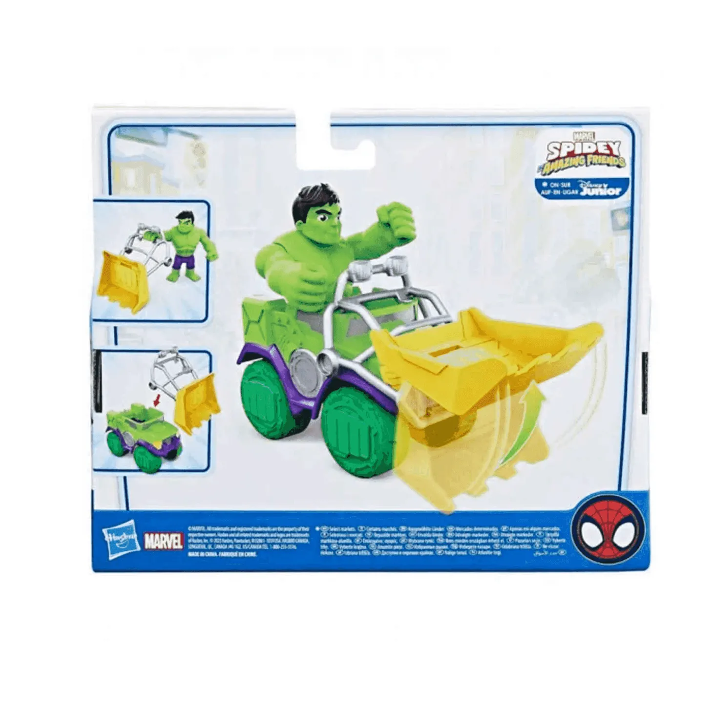 El set incluye una figura de Hulk de 10 cm y un camión con buldócer que lleva la fuerza y el poder del gigante verde a tus manos. Ahora, los niños podrán recrear emocionantes escenas y aventuras junto a sus superhéroes favoritos inspirados en el programa preescolar de Marvel.