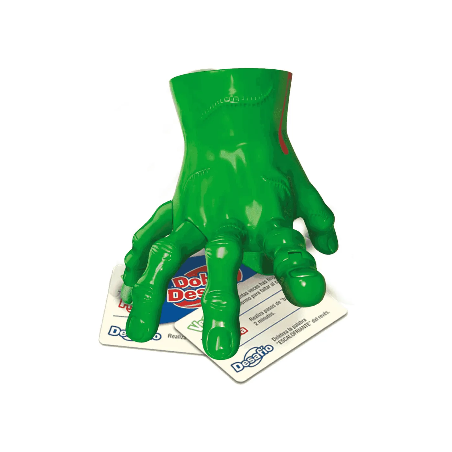 El juego contiene una mano verde con dedos móviles y 96 tarjetas que dictan las pruebas y las verdades. También incluye 6 tarjetas de doble desafío. La mano requiere tres baterías de tipo LR6 que no vienen incluidas en el set.