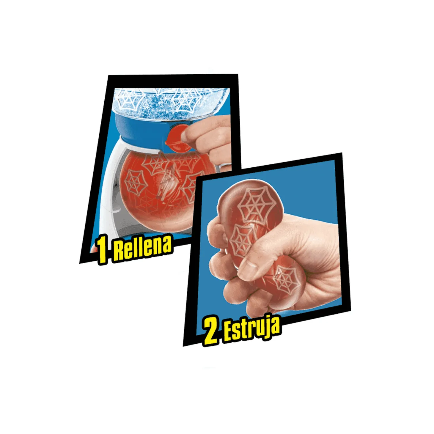 Es un juguete elaborado en plástico que consiste en un contenedor para el relleno y un espacio para colocar y rellenar la bola. Viene con varios rellenos reutilizables y además permite colocar otros materiales, como el slime o la brillantina. Se puede estrujar y estirar hasta que alcance tres veces su tamaño sin que se dañe el material. Primero debes rellenar y después estíralas y estrujalas, ¡tachán! Conseguirás las cabezas de tus personajes favoritos del universo de superheroes Avengers.