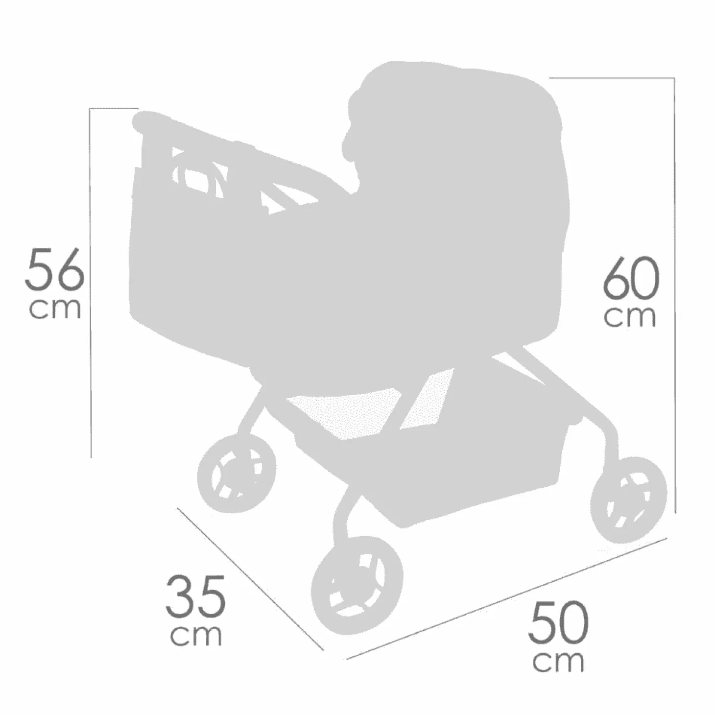 Con un capazo acolchado de 41 x 24 cm , este cochecito ofrece un espacio ideal para muñecas pequeñas. Sus detalles bordados, lazos acolchados y botones decorativos de madera natural le dan un toque elegante y cómodo, perfecto para cualquier pequeña que disfrute cuidando a sus muñecas.