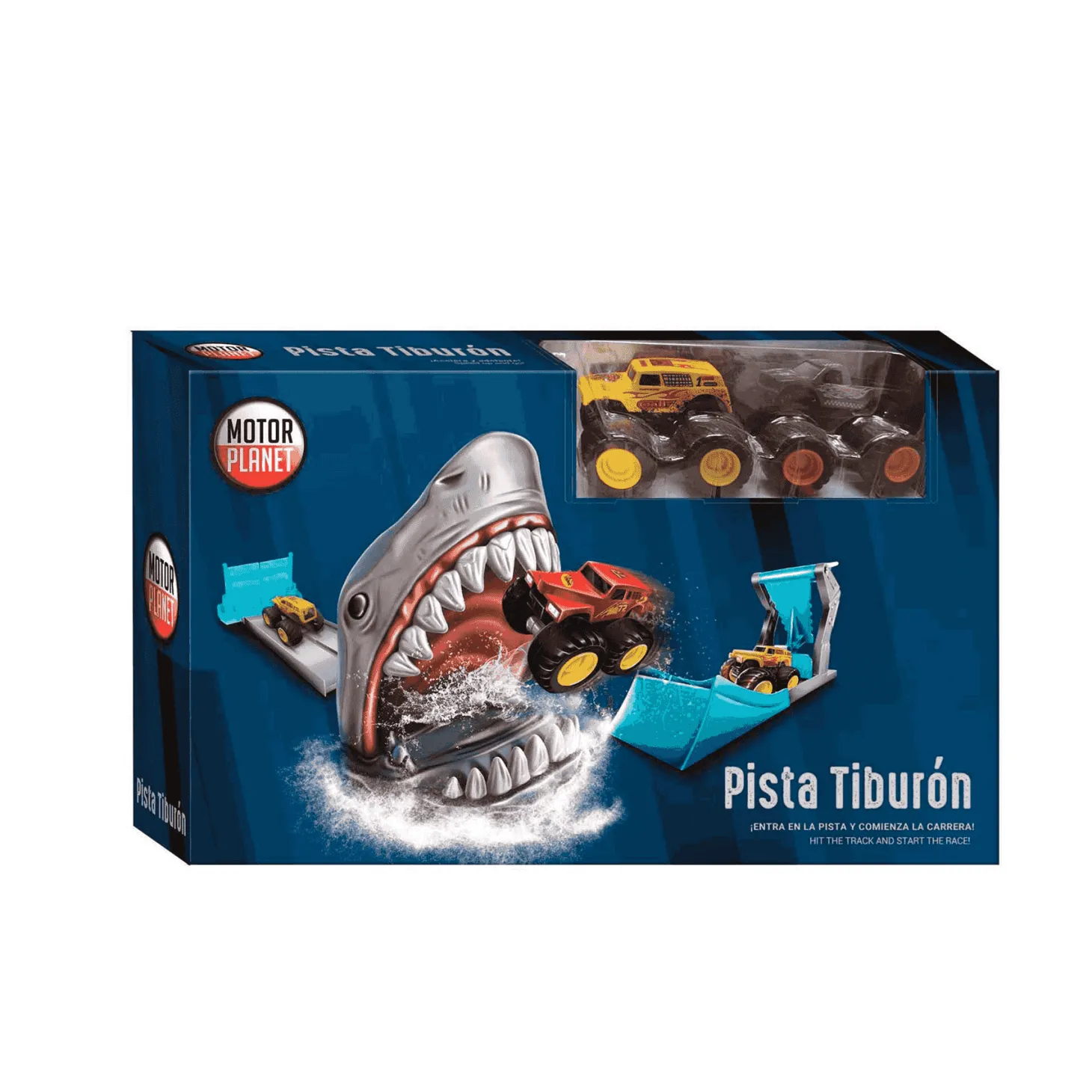 La Pista Tiburón de Motor Planet ofrece una experiencia de juego llena de adrenalina. Con este set, los pequeños conductores podrán acelerar y esquivar las feroces mandíbulas del tiburón mientras recorren la pista a toda velocidad. ¡Acelera y no dejes que el tiburón te atrape!