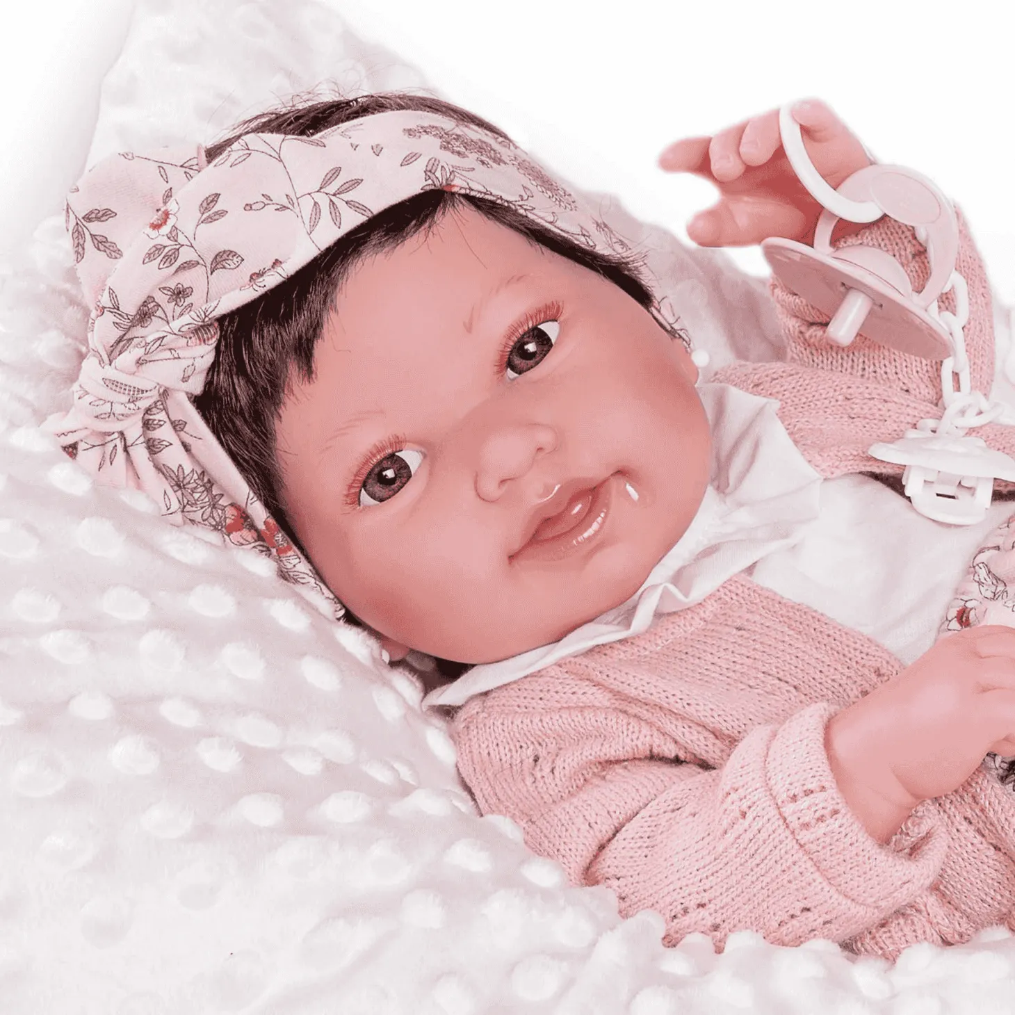 - Muñeca realista de 42 cm, con cuerpo de vinilo suave y sexuado.