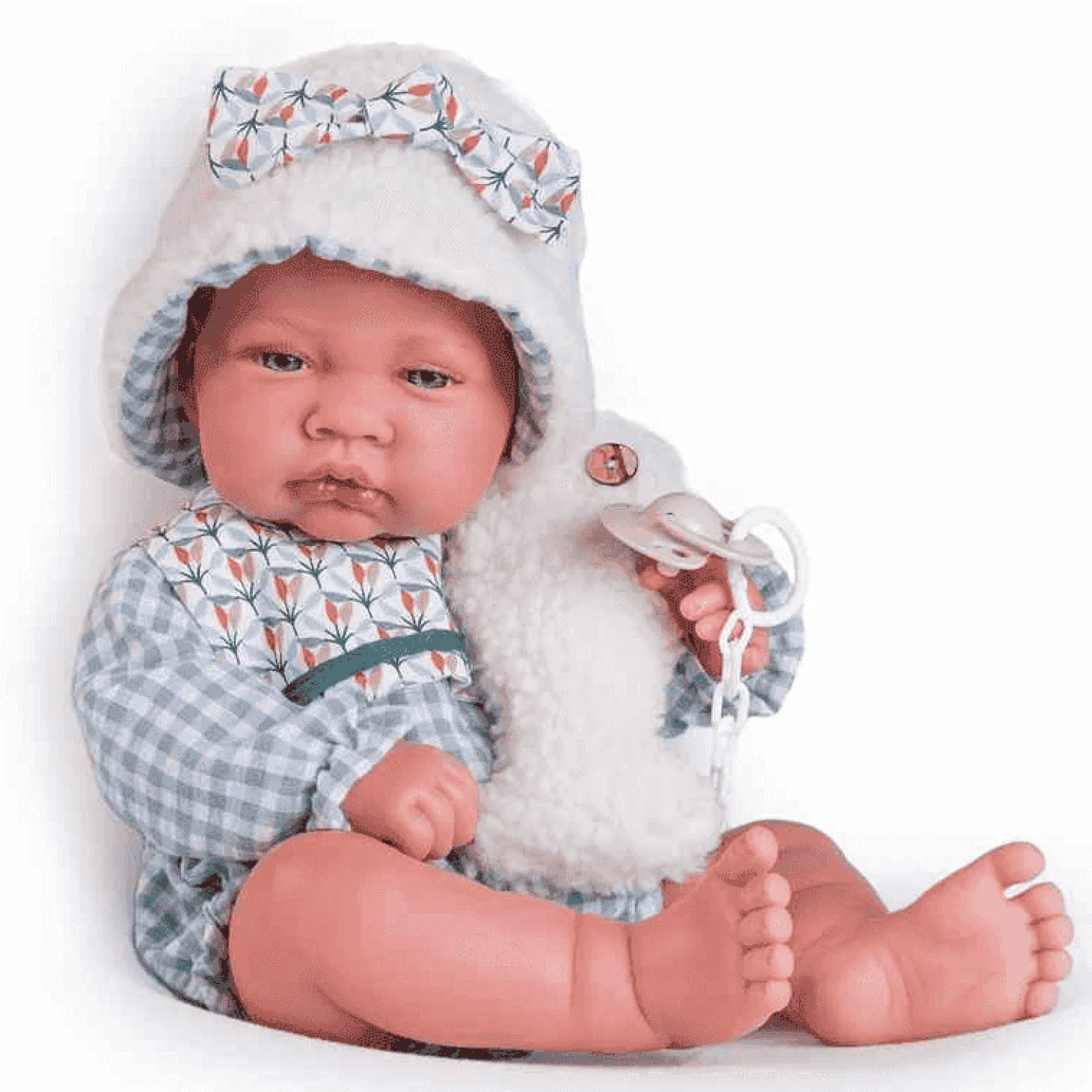 - Desarrollo de Habilidades Motoras: Manipular los accesorios, como el chupete y el peluche, ayuda a mejorar la coordinación y las habilidades motoras finas.