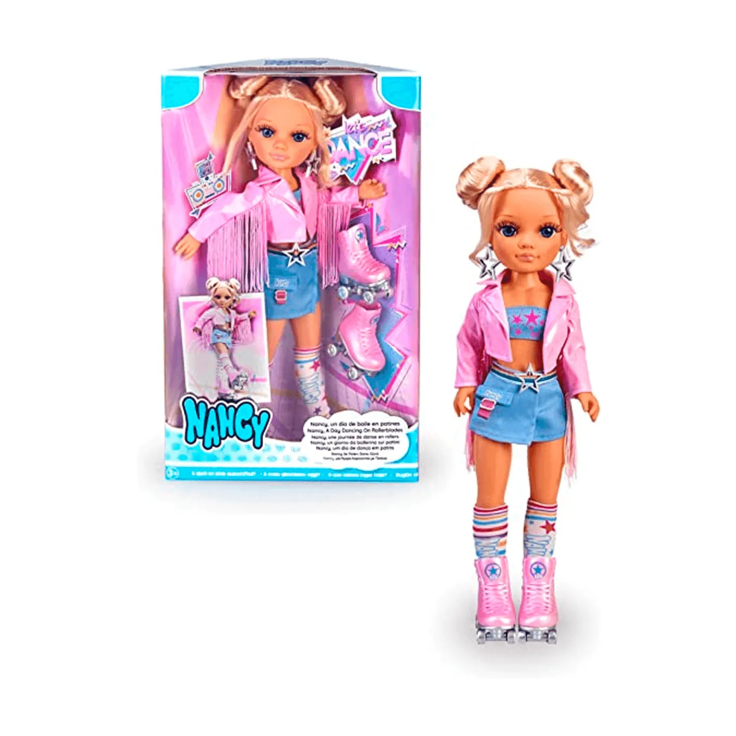 - Incluye: Muñeca Nancy, patines, chaqueta de flecos, top, minifalda, calcetas y pendientes.
