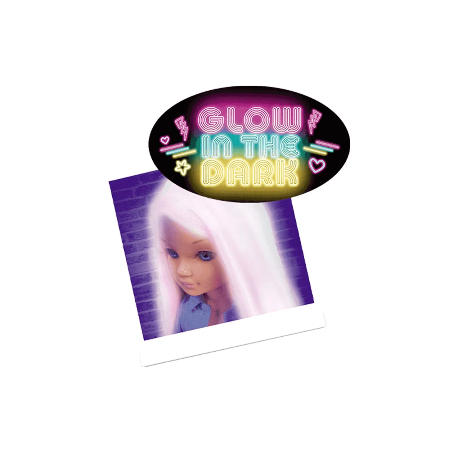 Tiene una larga melena rosa que brilla en la oscuridad y además incluye un pintalabios especial que también brilla en la oscuridad.Aplica el pintalabios a lo largo del pelo rosa, la cara y el cuerpo de Nancy para personalizar su look. Donde quiera que lo apliques, te encantará el aspecto cuando las luces se apaguen. ¡Puedes quitarlo fácilmente con agua y jabón!