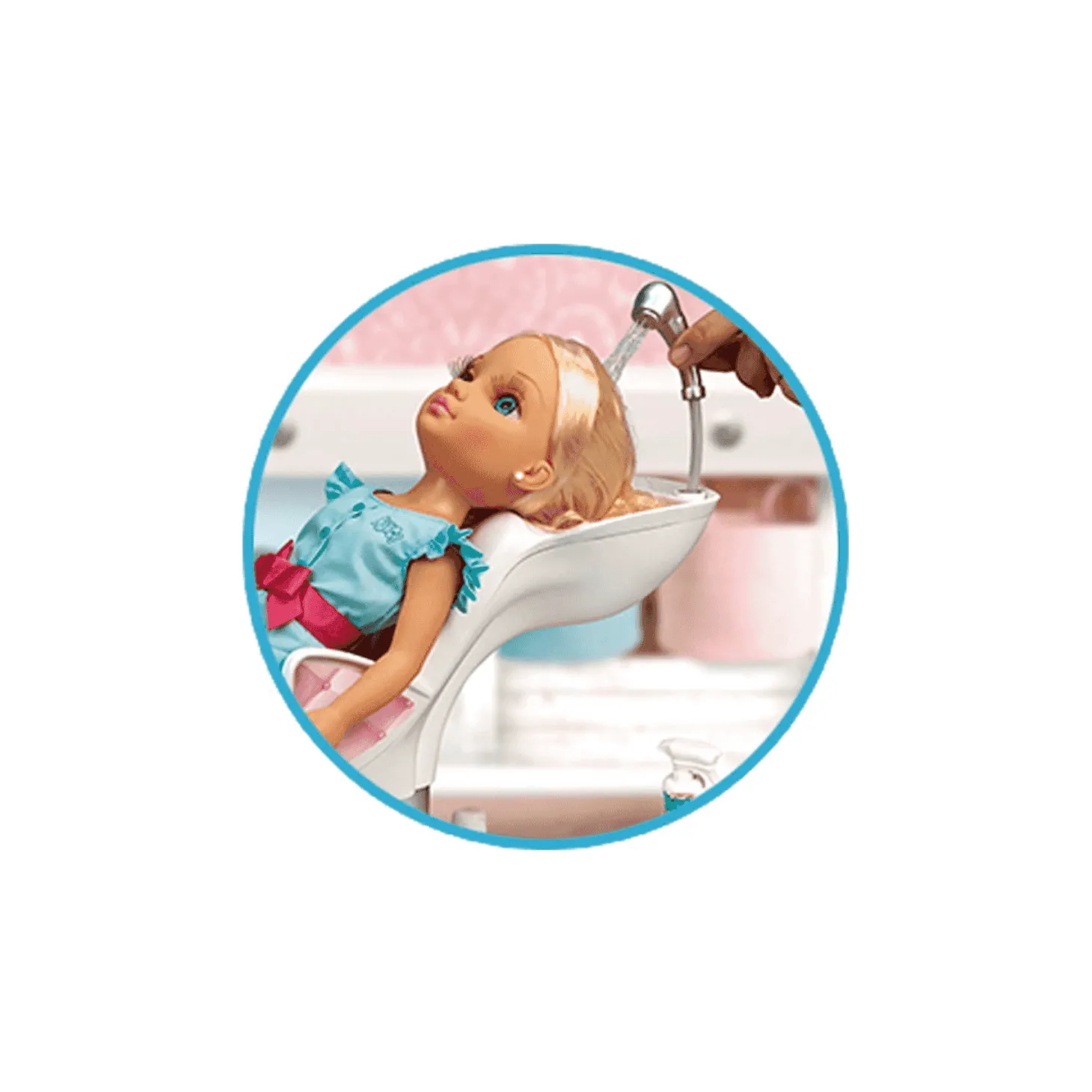 De la colección de muñeca NANCY, te presentamos la muñeca famosa Nancy un día en la peluquería. Este juguete hará que los niños y niñas de 3 a 6 años se diviertan mientras usan todos los accesorios para hacer que la coqueta NANCY disfrute de su día en el salón de belleza. Pueden lavarle el cabello de verdad, pues el lavabo tiene sistema de agua.