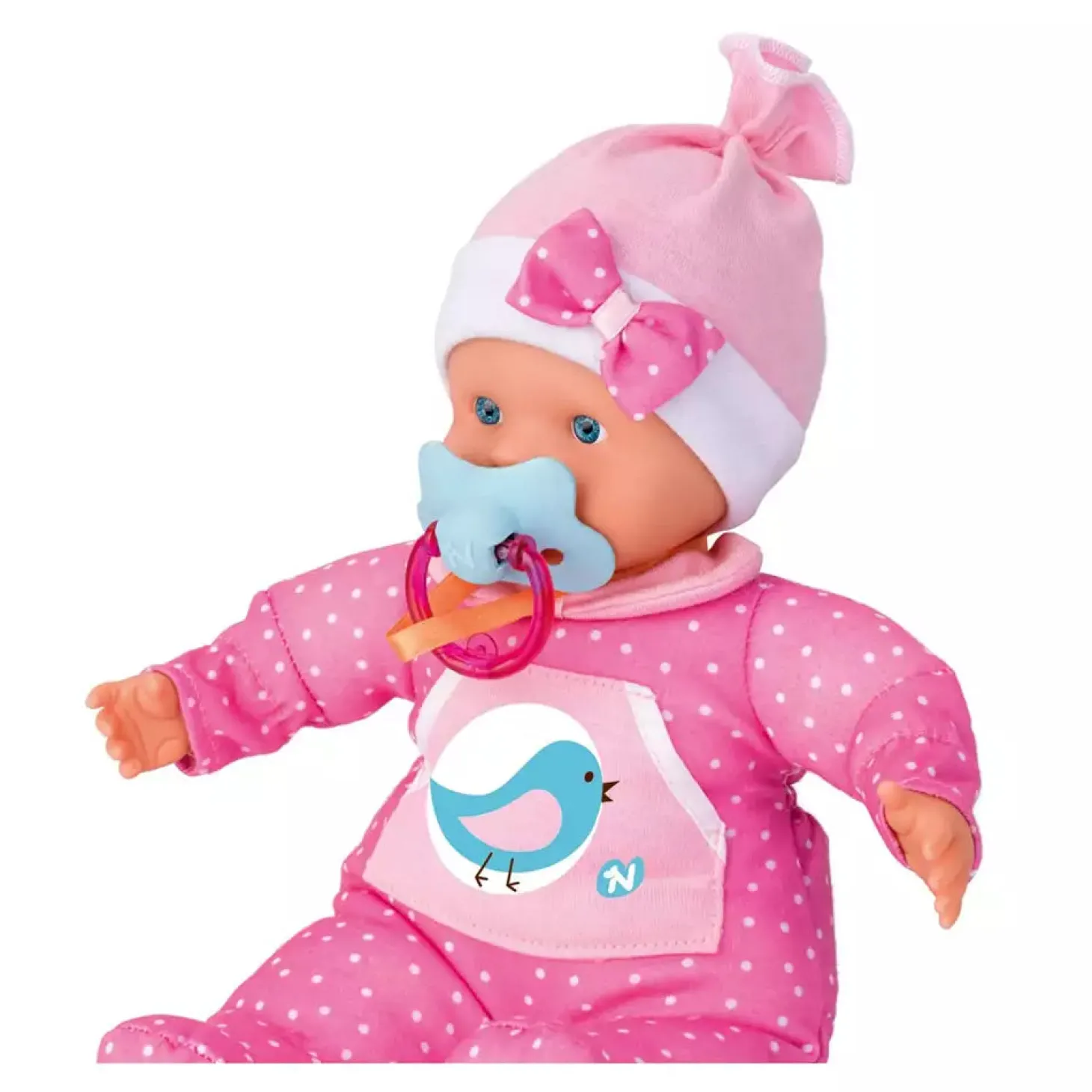 Este Nenuco blandito luce un vestido decorado con pájaros y lleva gorrito a juego. Cuando le das el chupete, hace el sonido tierno de ‘chupar’, pero si se lo quitas, llora de verdad. Además, como un bebé de verdad, puede meterse el dedo en la boca para consolarse.