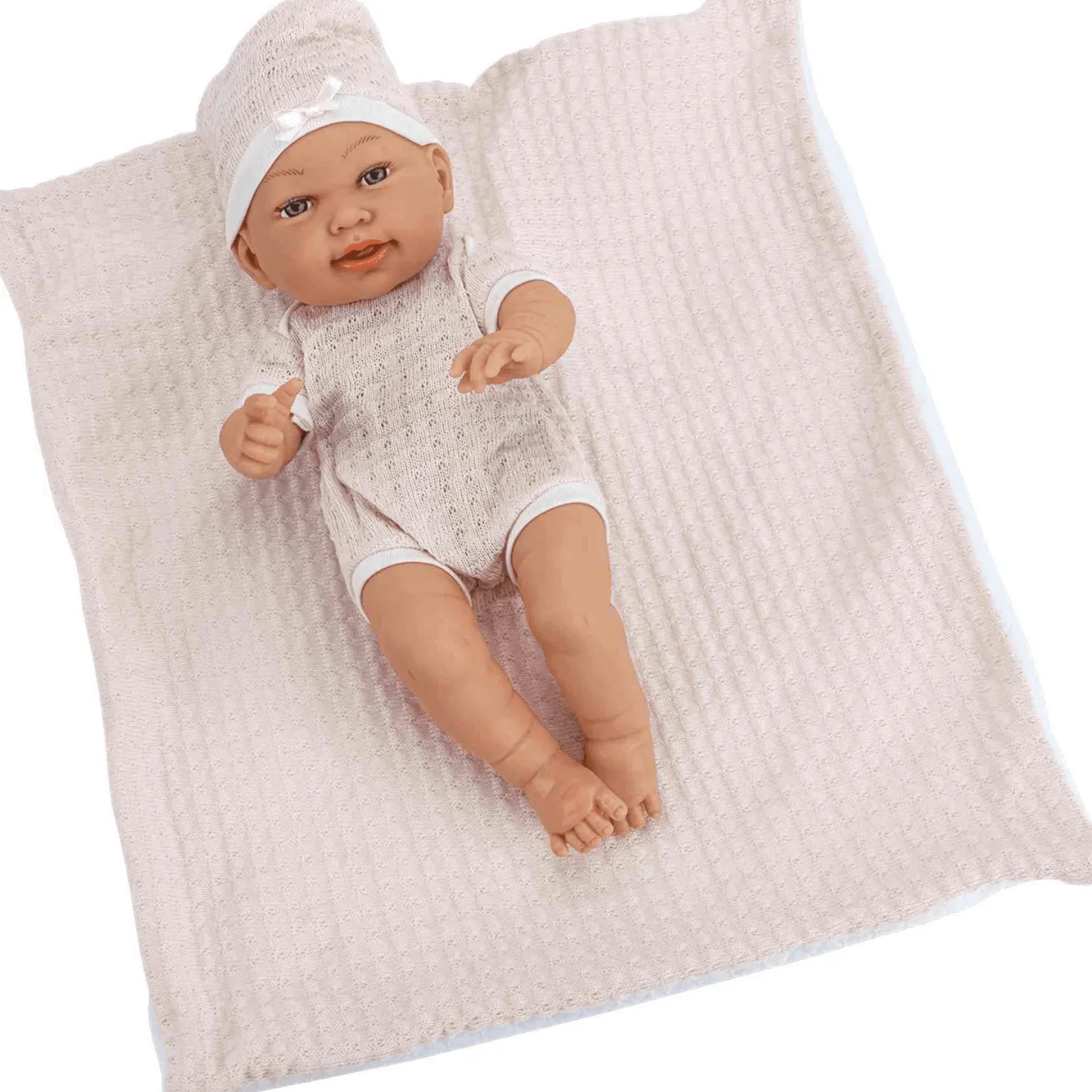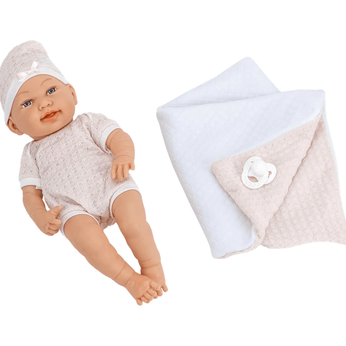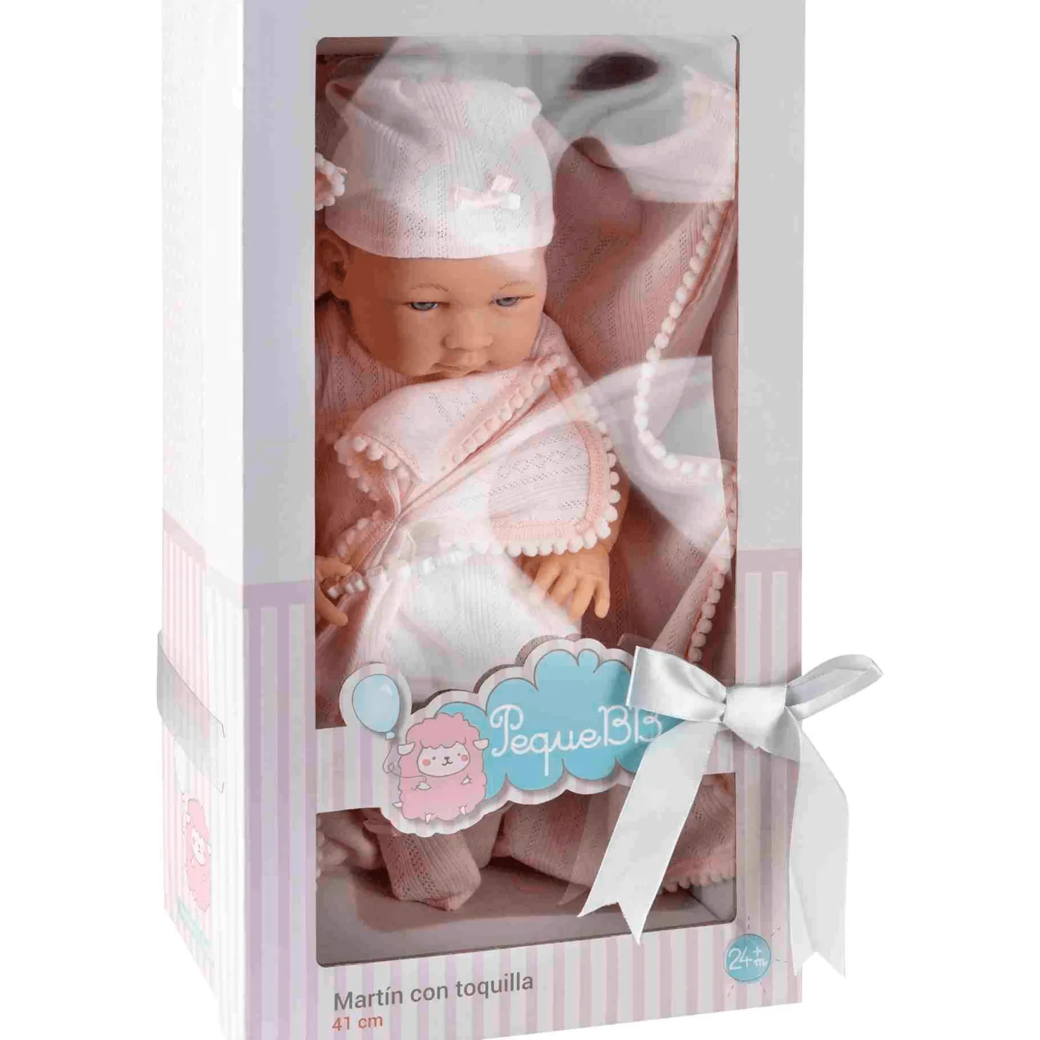 Bonito bebé muñeco de 41 cm de altura, dulce y realista, de la marca PequeBb, con arrullo. Podrás elegir entre bebé chico o chica. Ambos incluyen un suave arrullo para arroparlos.