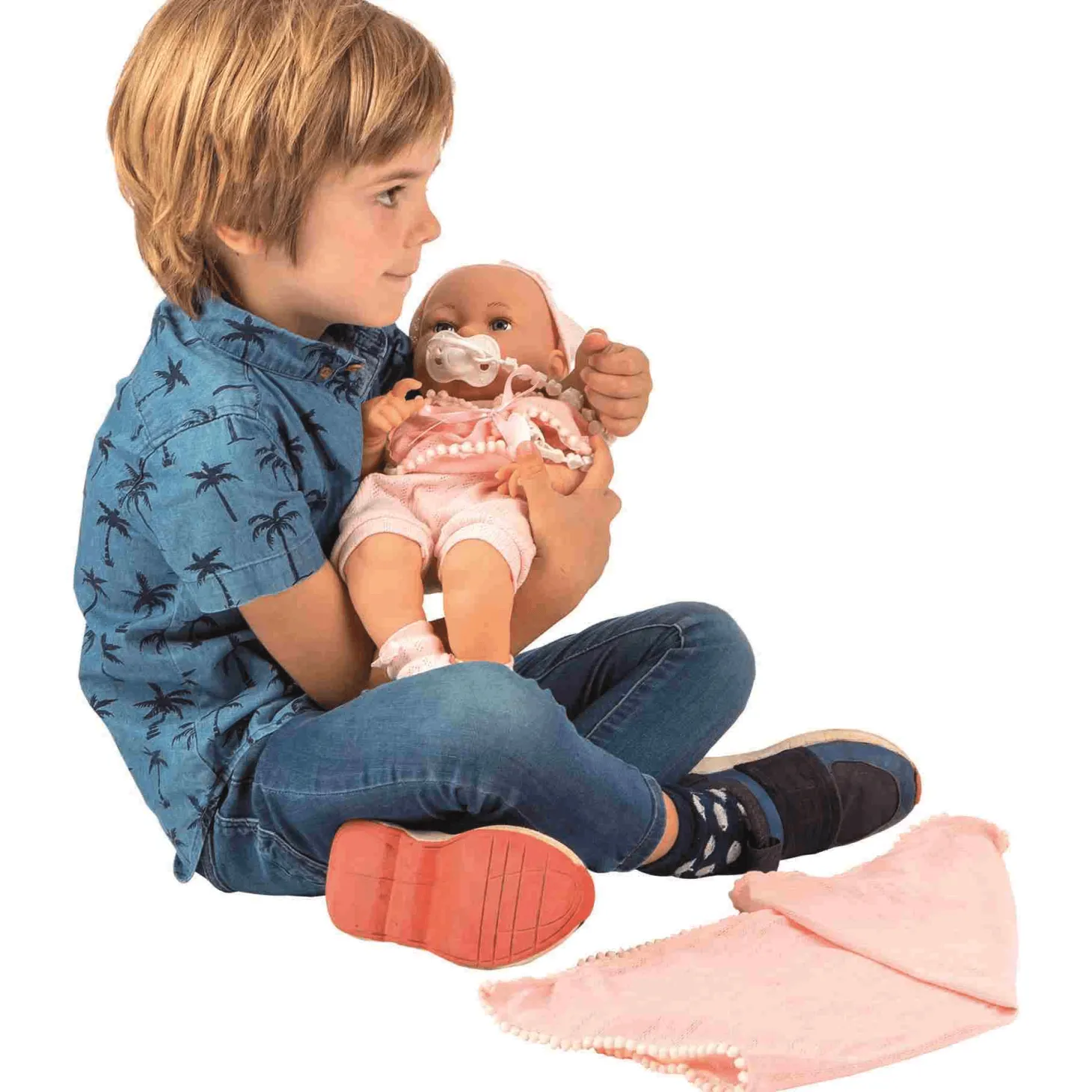 Dale la bienvenida a la familia a este juguete de bebé Martin Toquilla, este precioso recién nacido llegará para alegrar la casa y acompañar a los más pequeños de la casa, es un bebé dulce y realista. Posee un muy lindo conjunto de ropa que le permiten estar presentable para cualquier salida, además de un cojín muy bonito para ponerlo a dormir, y un chupete que hará la perfecta compañía a la hora de acostarlo. Es muy fácil de coger y de llevar a todos lados, así que está listo para cualquier salida. Será la compañía perfecta para los más pequeños.
