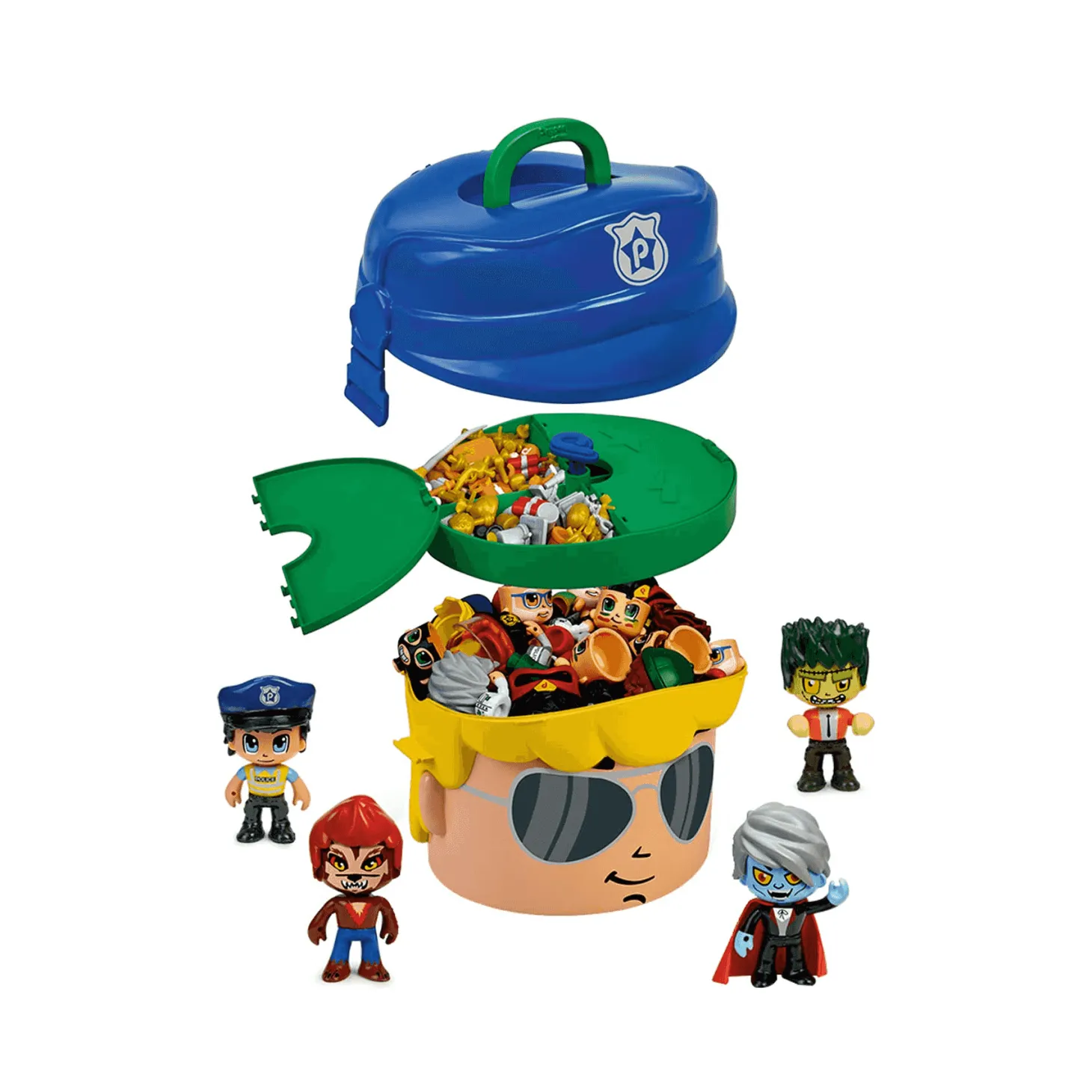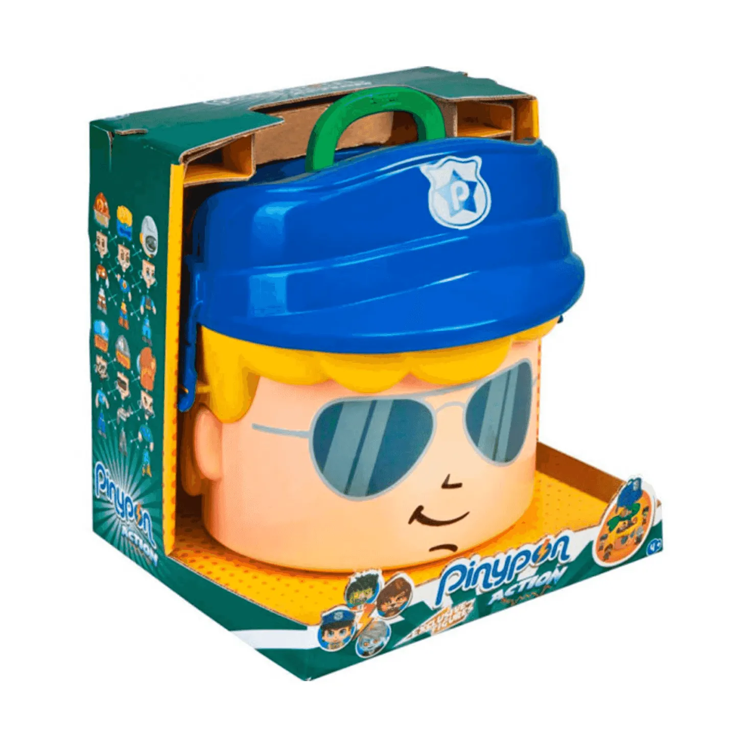 - Este Pinypon tiene forma de cabeza gigante de policía, es un contenedor con compartimientos para guardar otras figuras de Pinypon y mantener todo en orden.