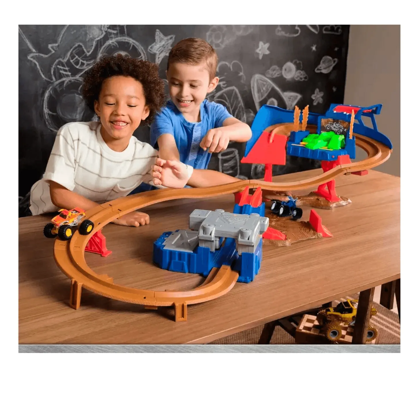 Este set permite a los niños recrear la velocidad y las maniobras de las competiciones reales de Monster Jam. Con un diseño de pista compacto pero emocionante, los pequeños pueden hacer correr sus camiones a toda velocidad y disfrutar de un sinfín de posibilidades de juego. Las carreras no tienen fin con el diseño en forma de ocho que asegura acción constante en cada vuelta.