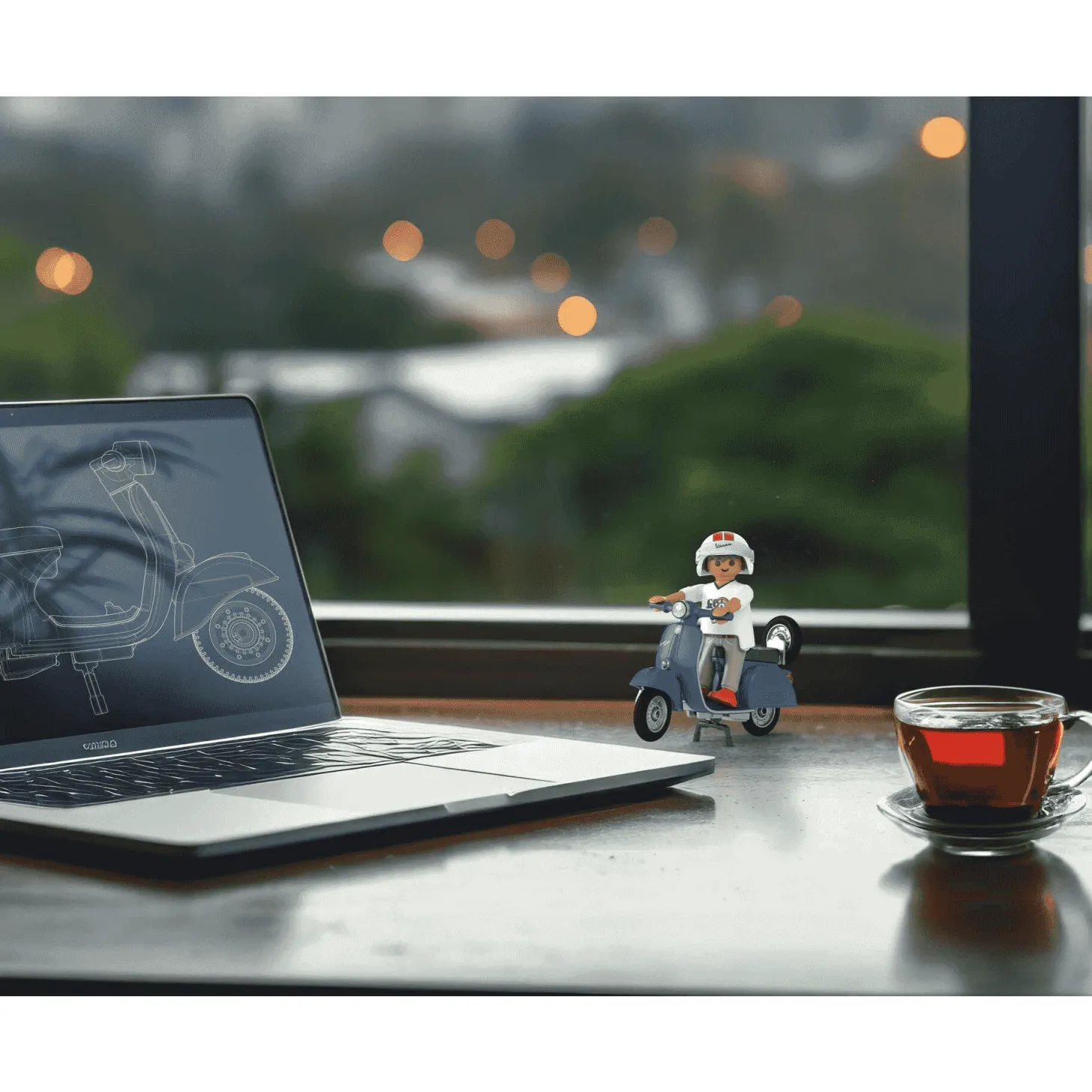 ¡Experimenta el encanto atemporal de la carretera con la Vespa 150 Sprint Veloce de 1969 en Azul de PLAYMOBIL! Siente el ambiente nostálgico de los años 60 y explora las calles con estilo. Este detallado set da vida al icónico diseño de la Vespa y ofrece horas de diversión tanto a niños y niñas como a los adultos aficionados a las scooters. Con una rueda de repuesto desmontable y la posibilidad de quitar las ruedas, se puede simular un cambio de neumáticos real. La Vespa de PLAYMOBIL tiene dos tipos de sillín – una fiel al original y otra para acoplar la figura PLAYMOBIL. De esta manera, ¡la Vespa se puede personalizar! Ya sea explorando las calles de la ciudad o viajando atrás en el tiempo, ¡se pueden vivir aventuras inolvidables con la Vespa 150 Sprint Veloce de 1969 en Azul de PLAYMOBIL!