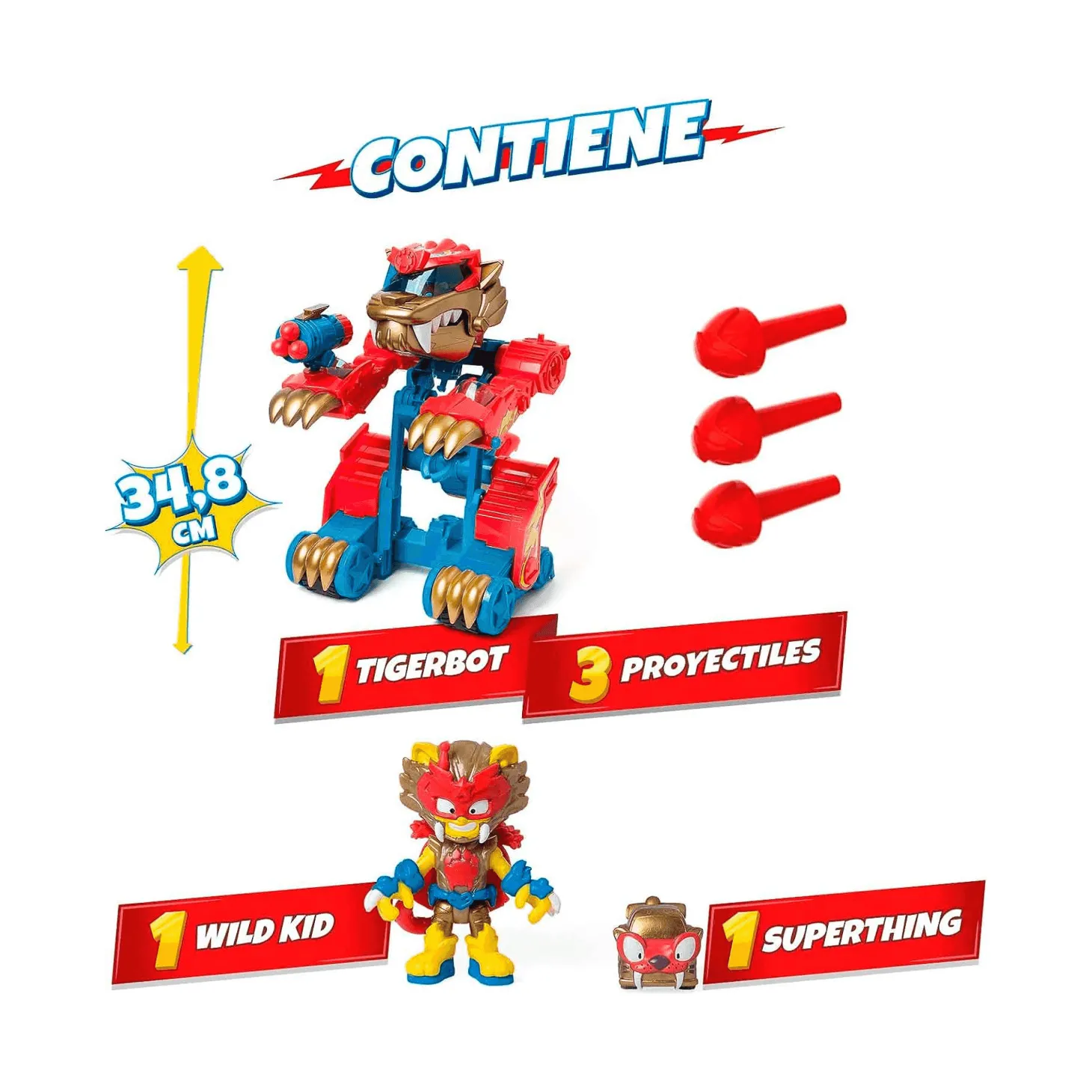 - Acción y Aventuras: Lleva a cabo emocionantes misiones y batallas con tu Wild Tigerbot, enfrentándote a enemigos y superando obstáculos en el mundo de SuperThings.