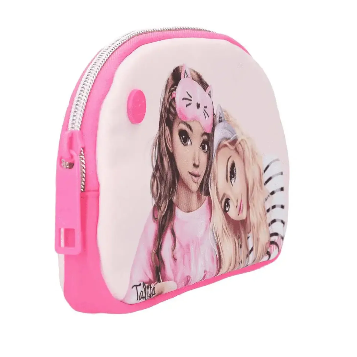 Descripción del producto: Belleza para viajar. Este pequeño neceser plano de color rosa de TOPModel destaca por sus detalles en fucsia neón, dos modelos como motivo principal de la cara delantera y un chulísimo mensaje con letras en colores neón y metálico en la cara trasera. Material: poliéster 100 por 100.